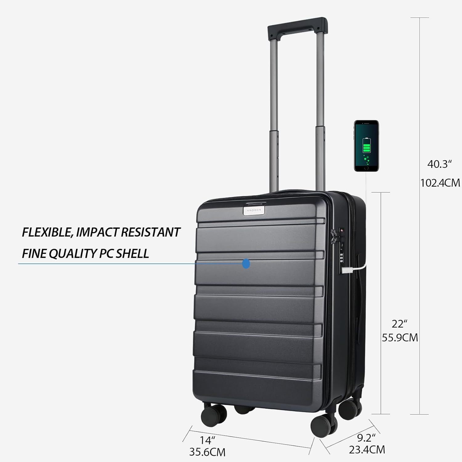 KROSER Carry On Luggage with Spinner Wheels & Built-in TSA Lock, Expandable Top Loading Hard Shell Suitcase Large Capacity Durable Rolling Luggage with USB Port, Carry-On 20-Inch, Steel Grey