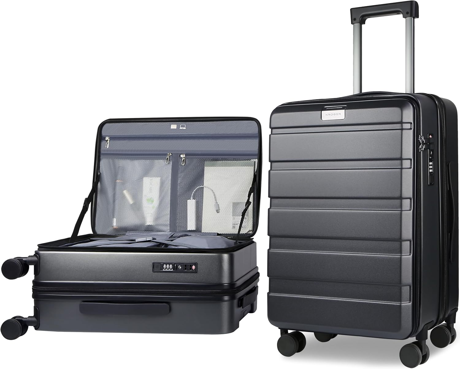 - 【CREATIVE TOP LOADING】Kroser Top Loading carry on luggage,Leading the future opening and closing method which is effortless to open or close the suitcase, not only is it easy to load, but it also saves space. This design solves the problem that traditional luggage separated 2 compartments of heavy load then it's difficult to open and close. Importantly, it also avoid the displacement of items.