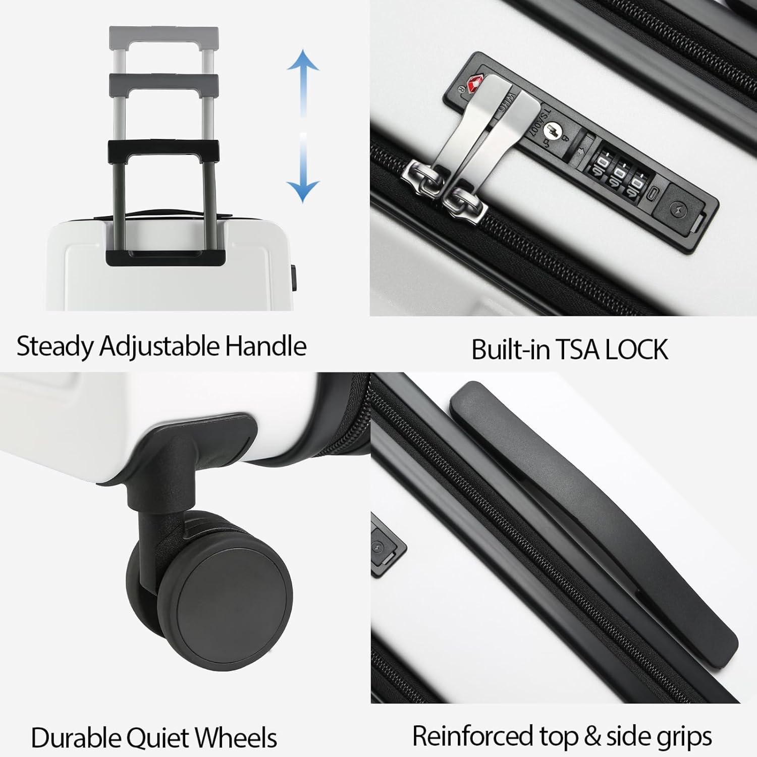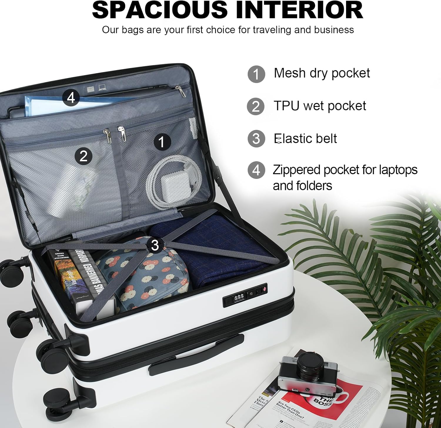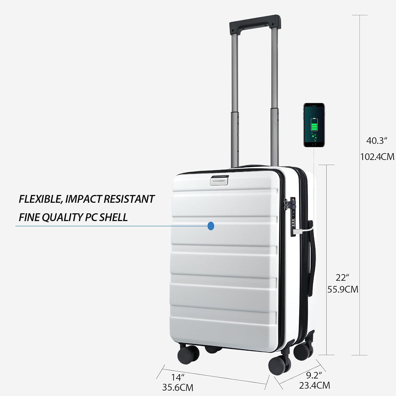 KROSER Carry On Luggage with Spinner Wheels & Built-in TSA Lock, Expandable Top Loading Hard Shell Suitcase Large Capacity Durable Rolling Luggage with USB Port, Carry-On 20-Inch, White