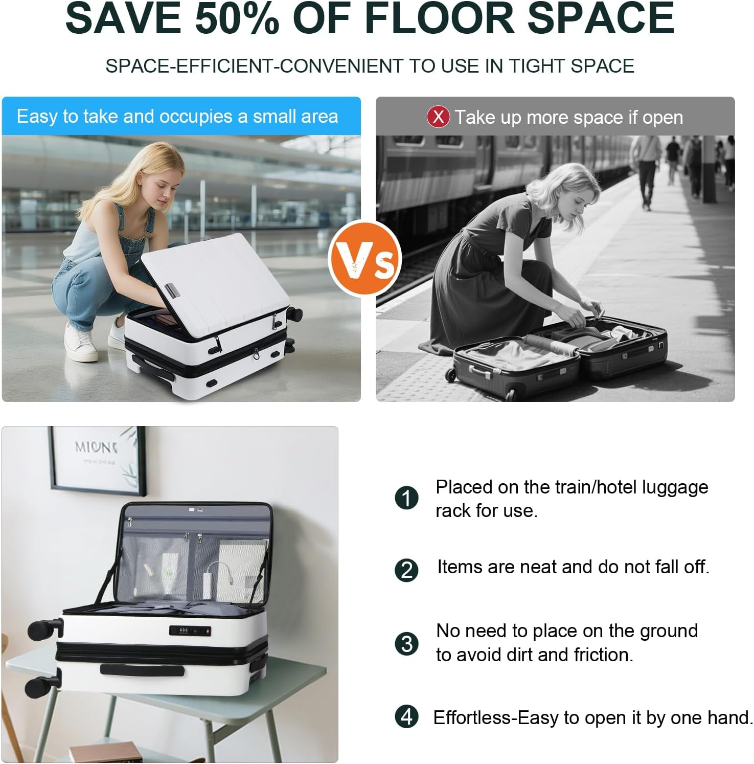 - 【CREATIVE TOP LOADING】Kroser Top Loading carry on luggage,Leading the future opening and closing method which is effortless to open or close the suitcase, not only is it easy to load, but it also saves space. This design solves the problem that traditional luggage separated 2 compartments of heavy load then it's difficult to open and close. Importantly, it also avoid the displacement of items.