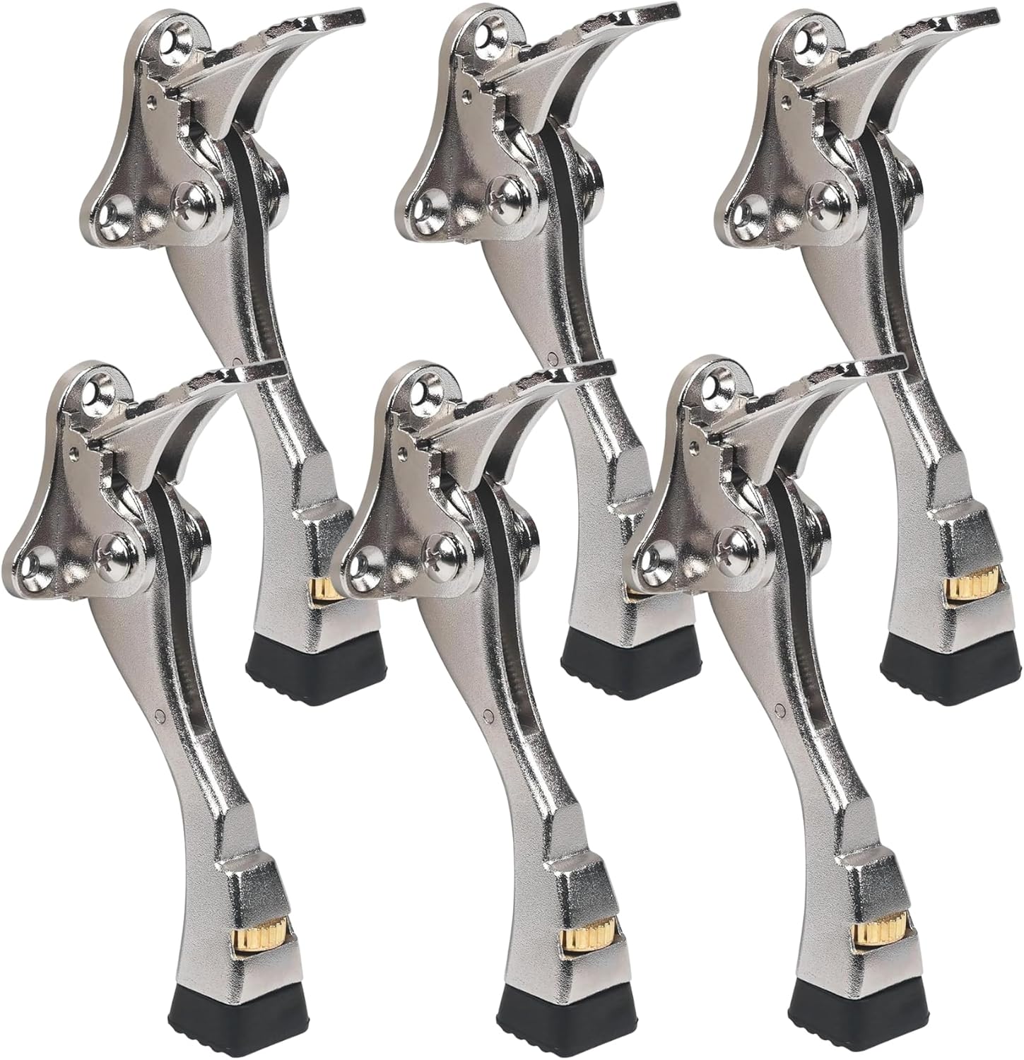 6 Packs Heavy Duty Kickdown Door Stopper, One Touch Adjustable Kickdown Door Stop for Heavy Doors, 4 in Metal Door Kickstand with Rubber Tip & Wall Protectors for Wide Doors