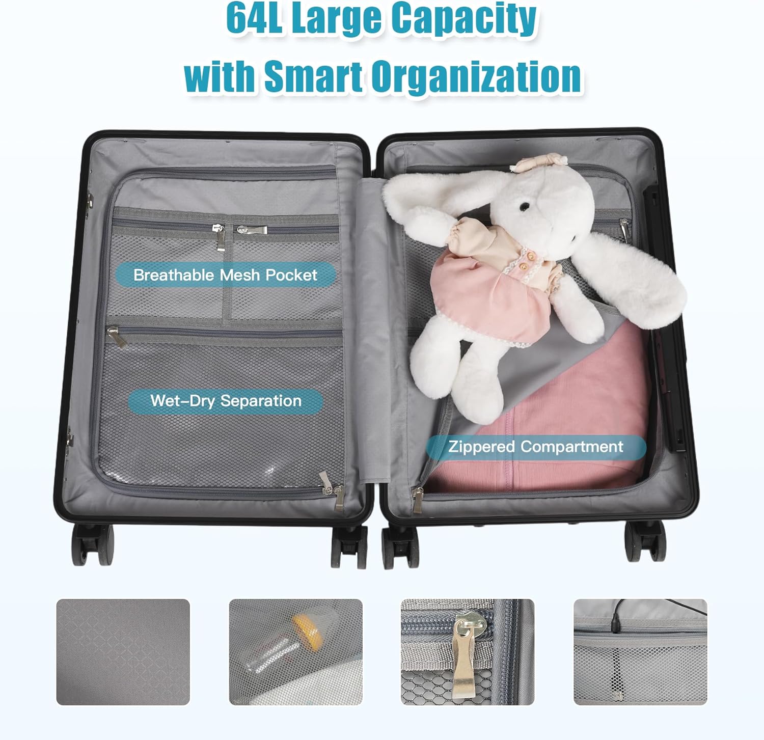 - 【Spacious and Versatile】 With a spacious 43L capacity and compact dimensions (20.8 x 14.1 x 9.8 inches), this carry-on luggage offers ample room for your essentials while being lightweight at just 10 lbs. Perfect for hassle-free travel, this suitcase is ideal for families, combining practicality with convenience.