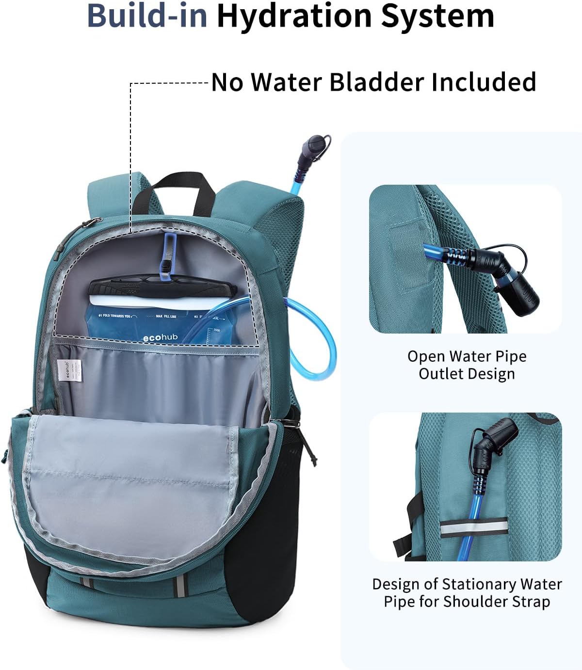 - 【Inner and Outer Connection Design】 Backpack has hooks inside the main compartment to hold the hydration bladder, and the straw exits from the right side exit of the backpack. Regarding this exit, you can also use it as a USB cable exit. This will better energize you or your electronic devices while in hiking , traveling, camping and so on(No Water Bladder Included)