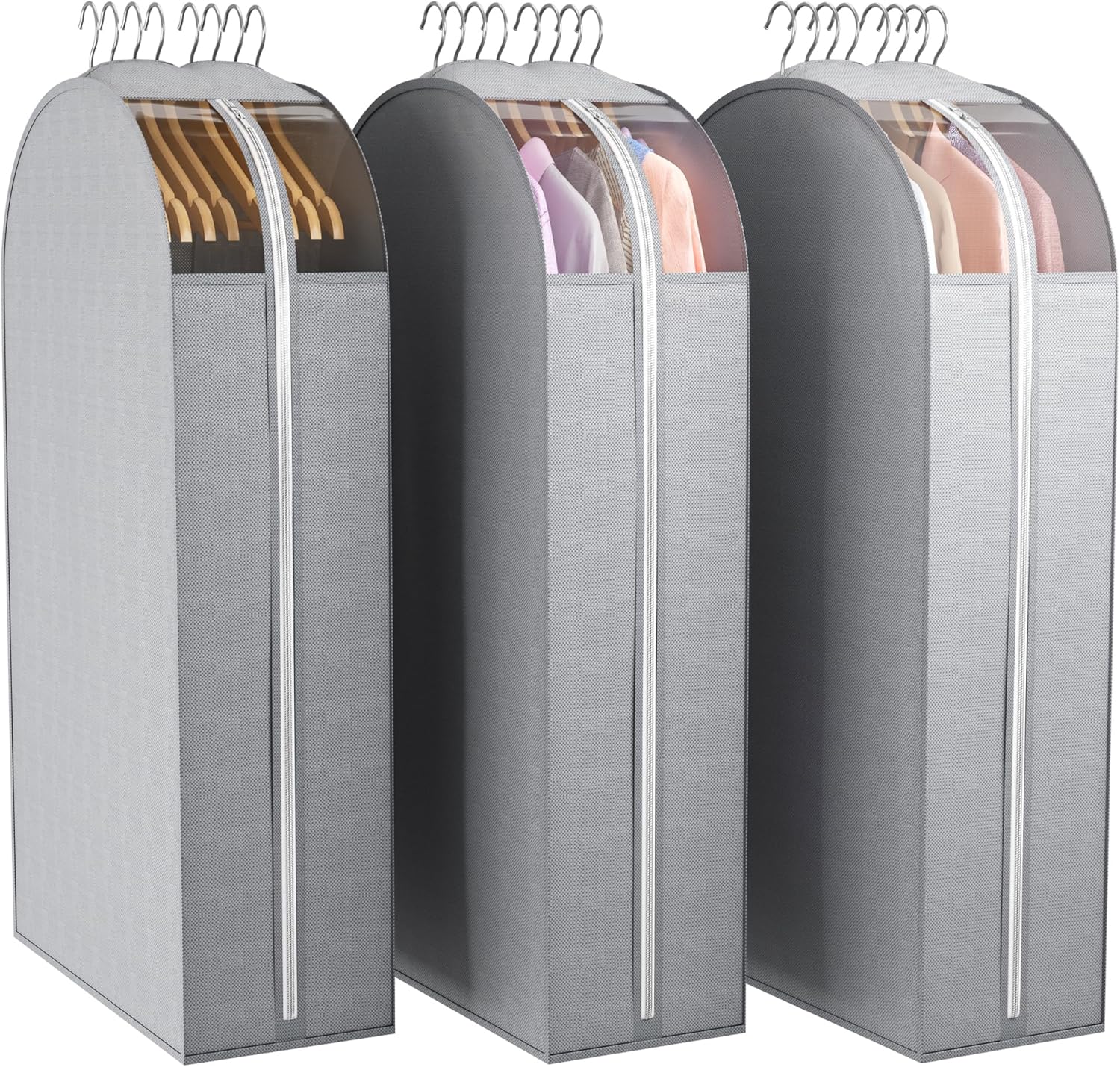 - 10” Gusseted & 3 Pack: Each garment bag can hold 10 suit or 8 winter coats without wrinkles.50 inch length is perfect for storing long coats, furs,Jacket, MIDI dresses and pants, etc