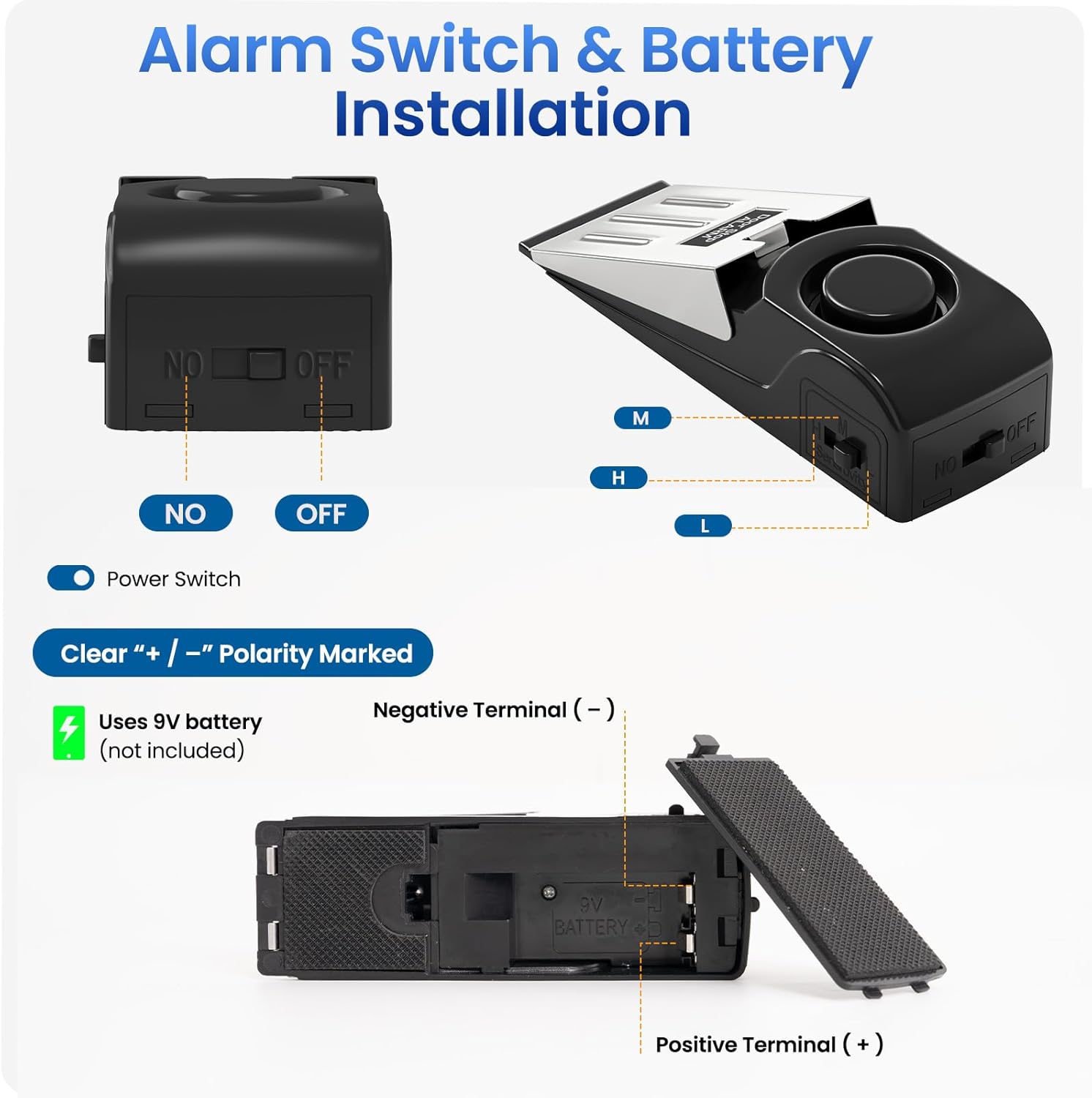 - Dual-Function Door Stopper: Also functions as a door stopper; when the alarm is off, it operates as a silent, non-slip wedge that firmly holds the door open, its anti-slip design prevents unintended door movement, providing enhanced security and safety