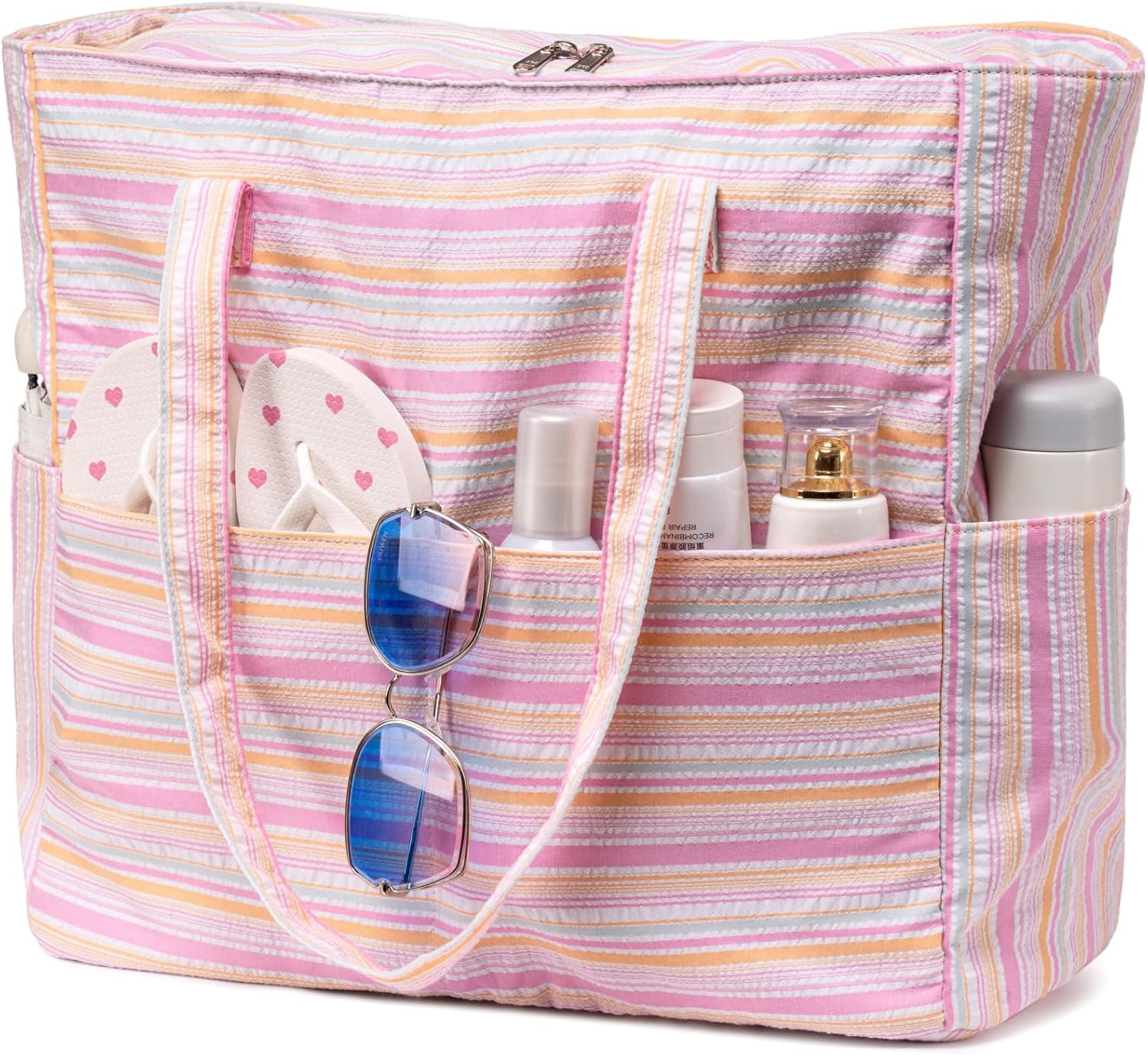 Waterproof Beach Tote Pool Bags for Women Ladies Extra Large Gym Tote Carry On Bag With Wet Compartment for Weekender Travel
