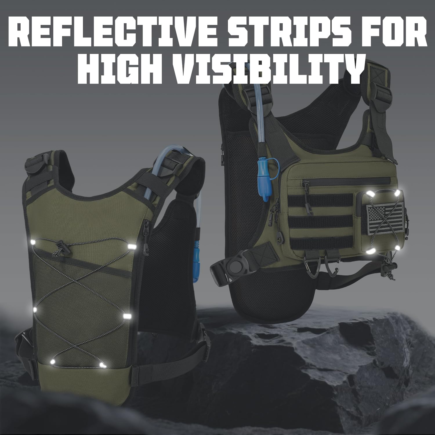 Hydration Vest(The design patent has been granted )with 2L Water Bladder for Men and Women,Lightweight Adjustable Hydration Backpack,Reflective Running Hydration Chest Bag for Hiking Climbing Cycling