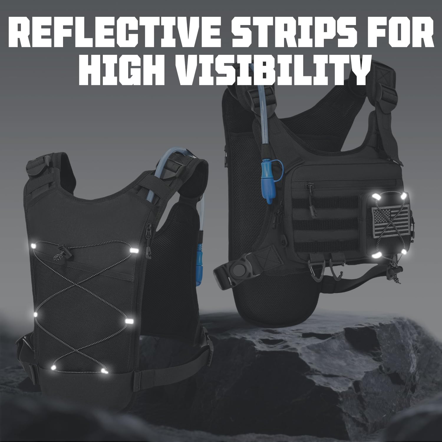 Hydration Vest(The design patent has been granted )with 2L Water Bladder for Men and Women,Lightweight Adjustable Hydration Backpack,Reflective Running Hydration Chest Bag for Hiking Climbing Cycling