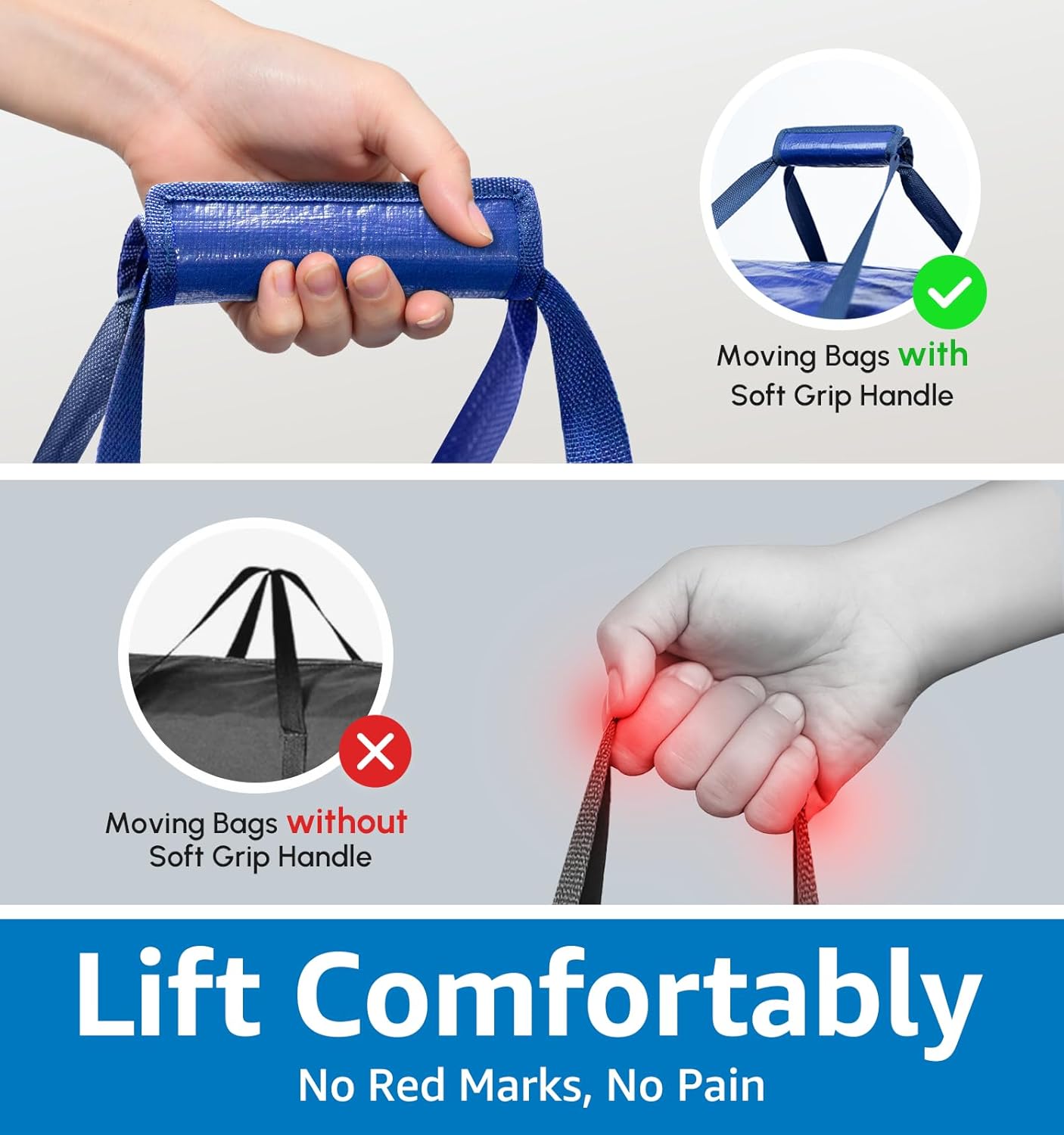 6 Pack Heavy Duty Moving Bags with Padded Wrap Around Handles-Strengthened Zipper Extra Large Storage Totes for Dorm College Clothes Blue