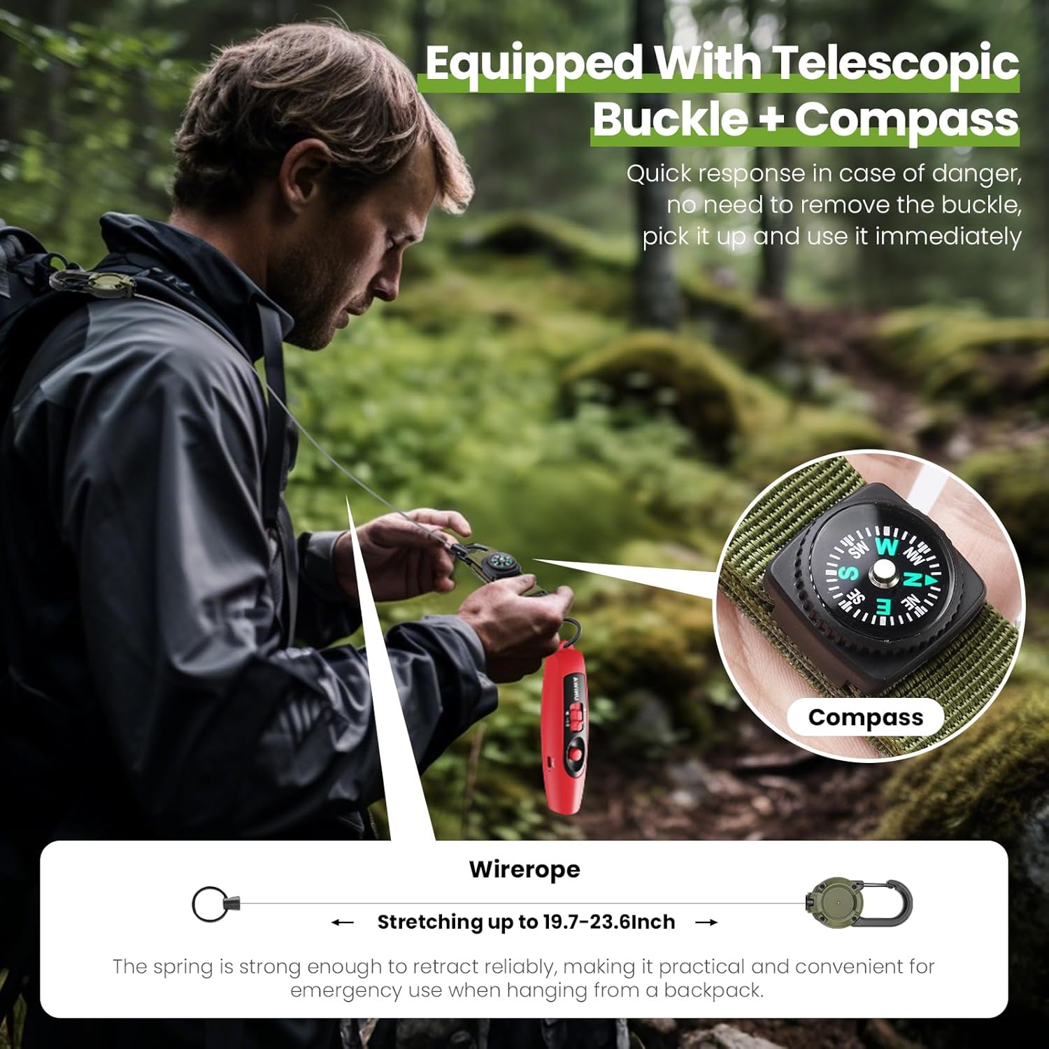 - 【Multi-Function & Wide Application】This bear horn contains a compass and a retractable rebound rope. With its powerful sound, our bear horn could effectively scare off bears and other wild animals, ensuring your safety on outdoor adventures. It can be easily handled with one hand and attached to a backpack for quick access while camping, backpacking or hiking.
