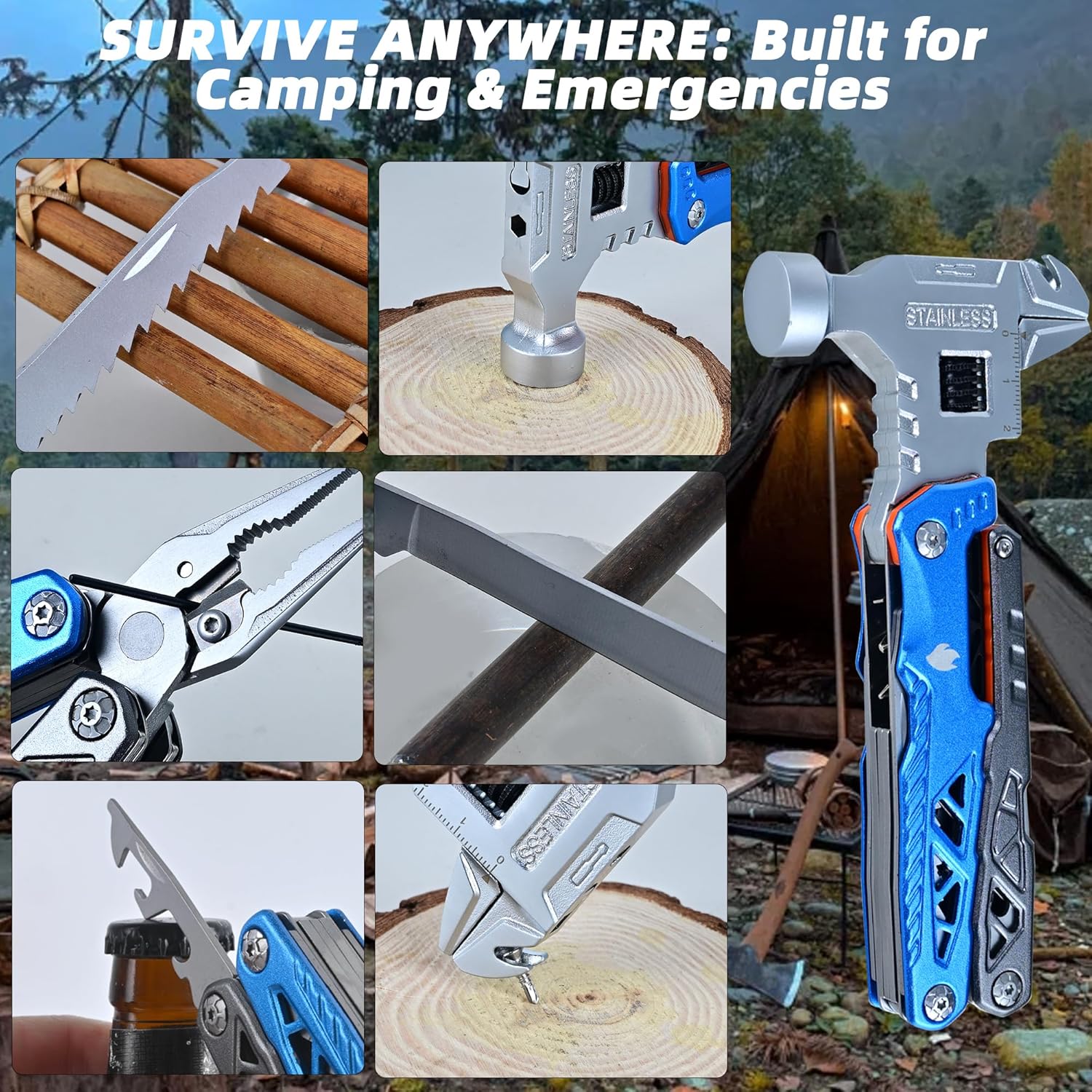 - 18-in-1 Multi-Tool Kit & Survival Gear: All-in-one tool with hammer, pliers, screw cutter, and pocket knife. Perfect survival multi-tool for camping, fishing, and outdoor emergencies. Compact multi tool kit fits in any pocket tool pouch.