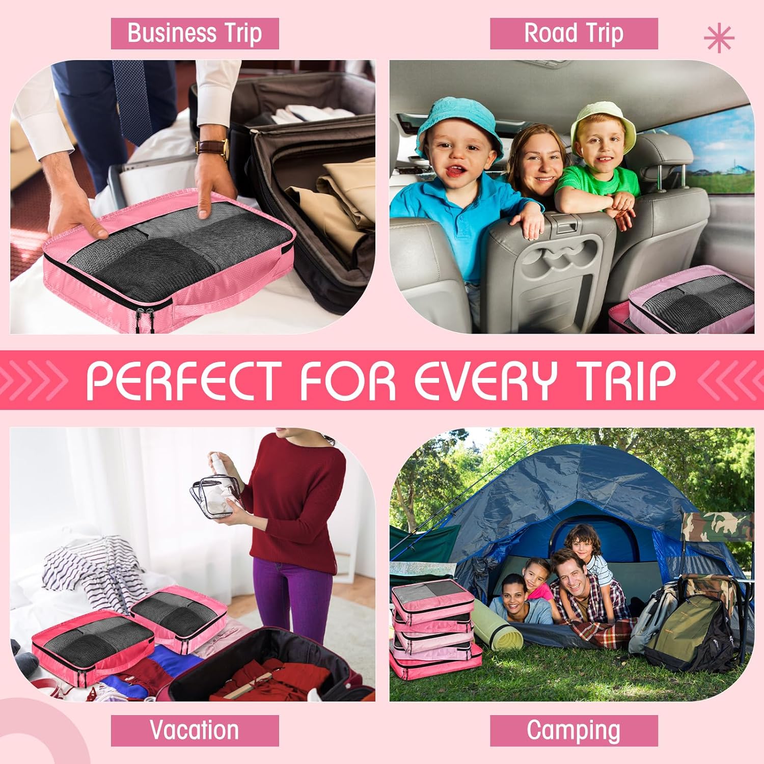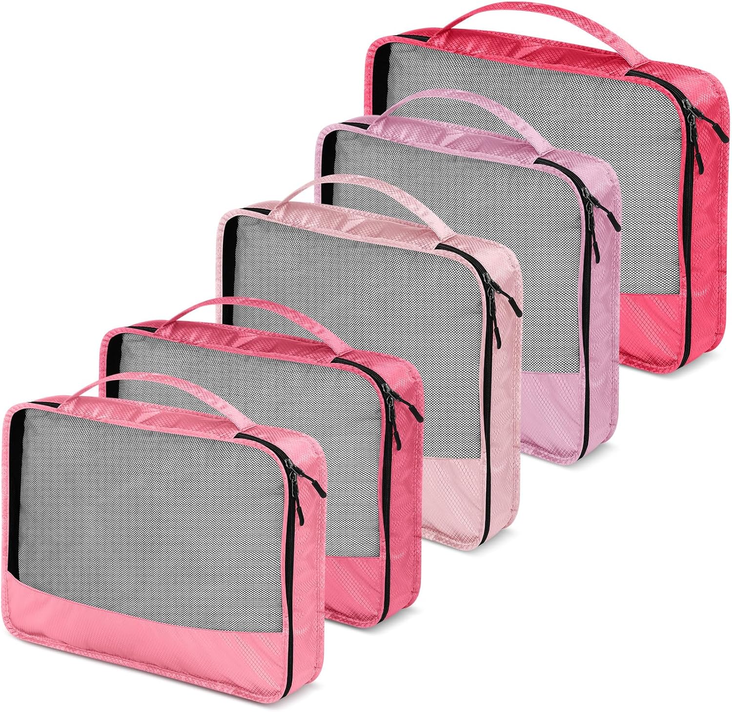 5 Pcs Packing Cubes for Suitcase Large Travel Cubes Carry on Luggage Organizer Bags for Clothes Accessories(Mixed,Pink)
