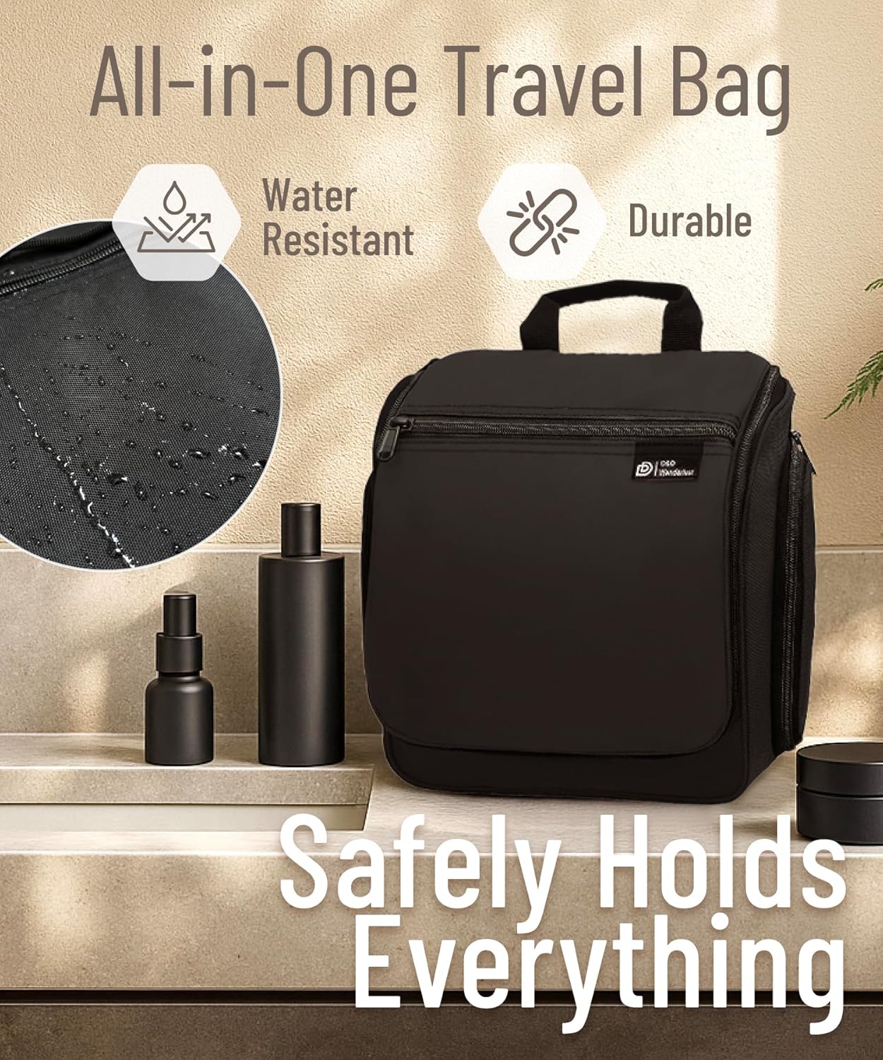 DD D&D Wanderlust D&D Hanging Travel Toiletry Bag for Men and Women - Extra Large Toiletries Organizer Kit with 10 Compartments, YKK Zippers, XXL Metal Swivel Hook, Water-Resistant Nylon