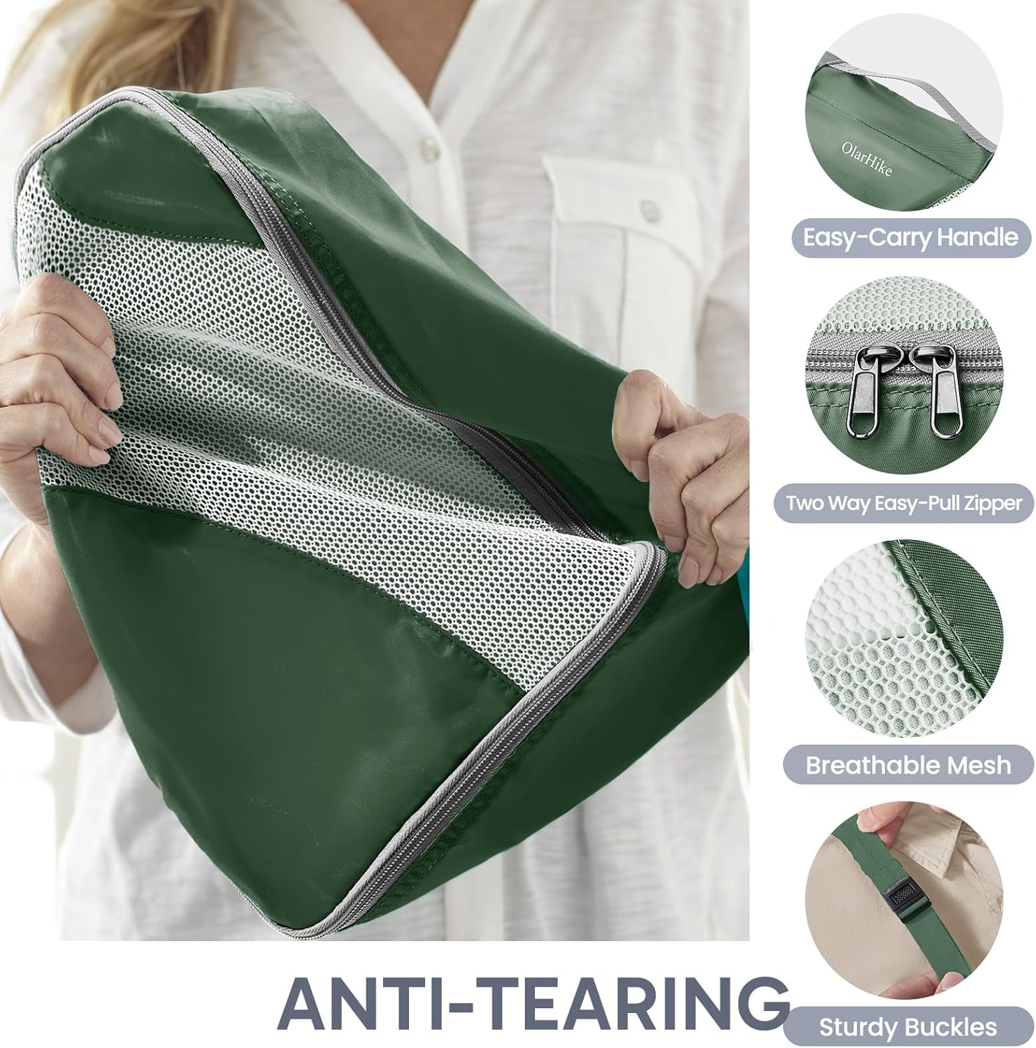 - Built to Last : Crafted with anti-tear fabric, reinforced double seams, and high-density stitching, OlarHike packing cubes are made for durability. The LST-tested mesh can withstand up to 4x stronger tension, standing up to the demands of frequent travel