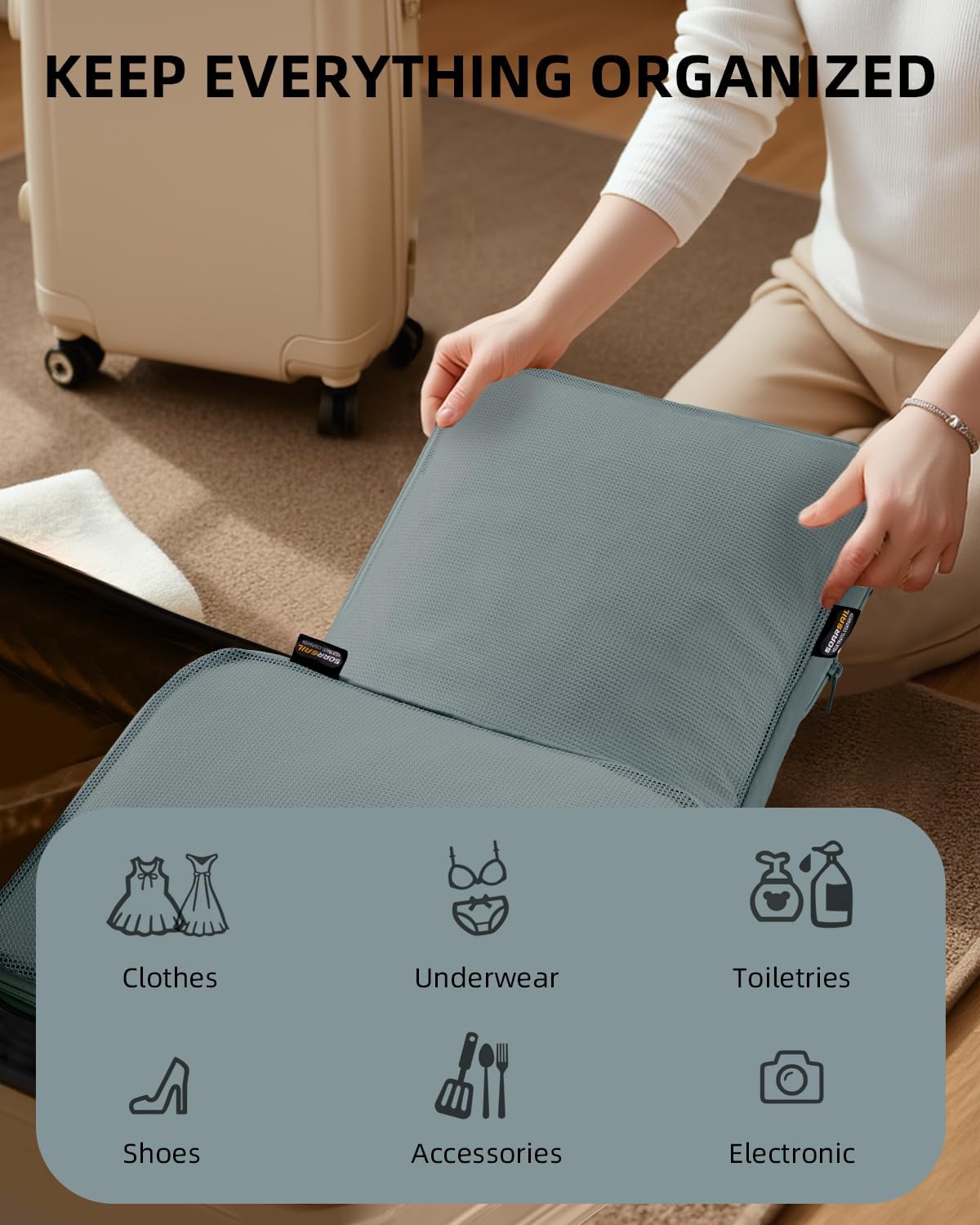 - Pack Like a Pro: Squeeze up to 50% more into your suitcase with our 6-piece compression packing cube set. Say goodbye to wasted space and hello to wrinkle-free travels—pack smarter for any trip.