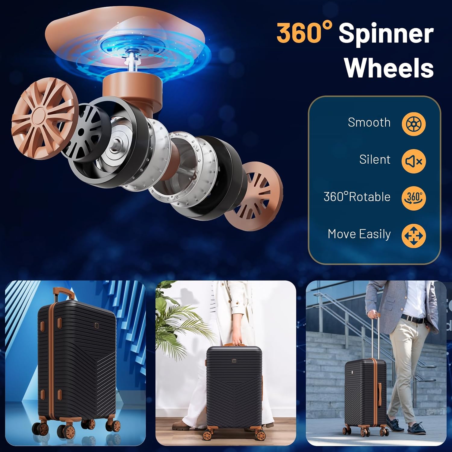 - 【360°Silent Spinner Wheels】Our suitcases have 360° swivel wheels for flexible movement in multiple directions; the retractable handle is ergonomic and has 3 height adjustments, making it easy for you to travel when you say you will