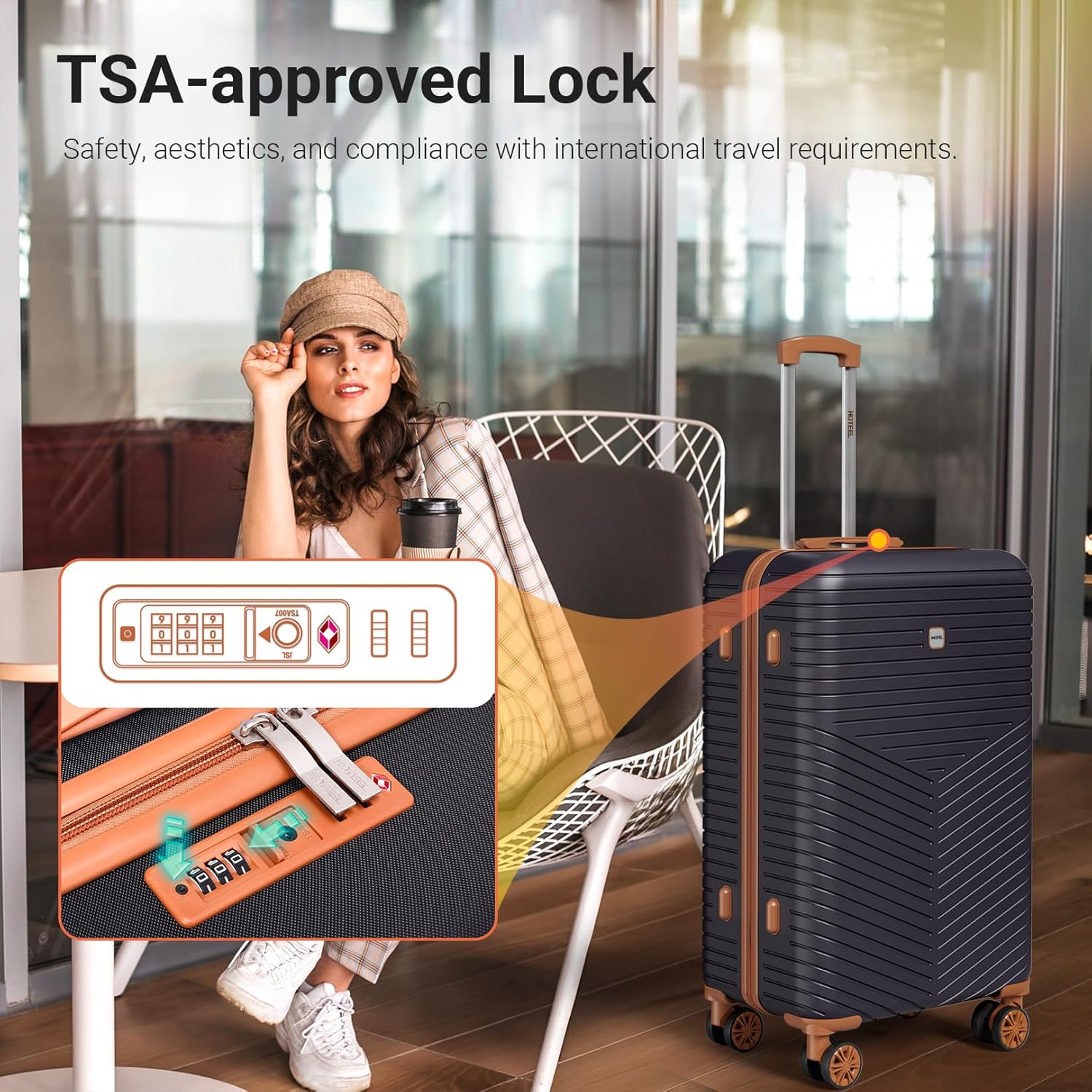 - 【Durable Material Protection】Constructed of PC+ABS composite material, the luggage set is both practical and lightweight, with a scratch-resistant and abrasion-resistant surface that maintains the shape of suitcase set during ground movement and vehicle transportation