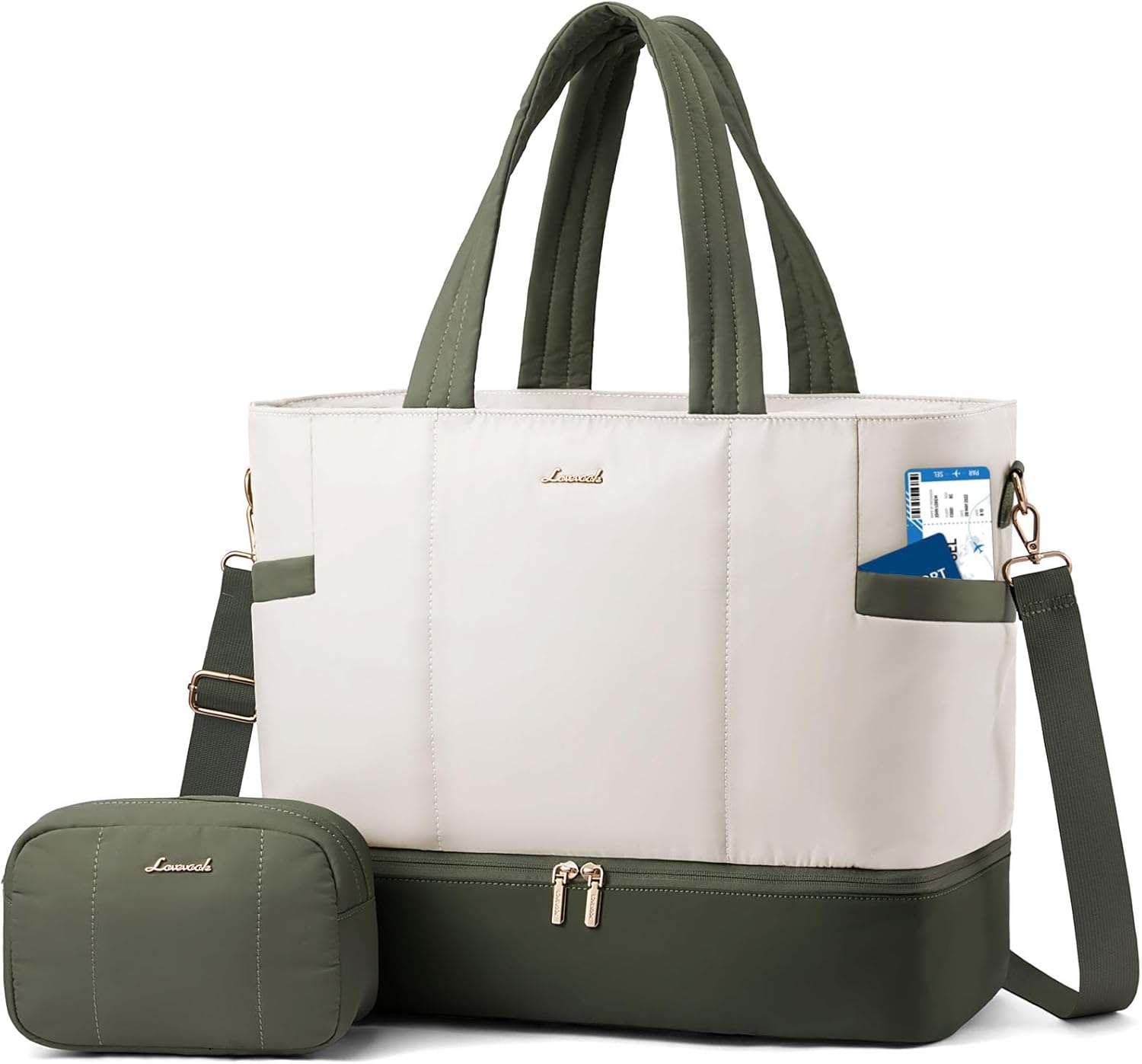• 【Spacious & Versatile Pockets】: This weekend bags for women travel includes 1 large compartment for organizing essentials like clothing and electronics. This large duffle bag for travel has 1 wet pocket to keep wet clothing separate from dry items, plus multiple internal pockets for organized storage, 2 side pockets, 1 external zippered pocket, and 1 additional makeup pouch.