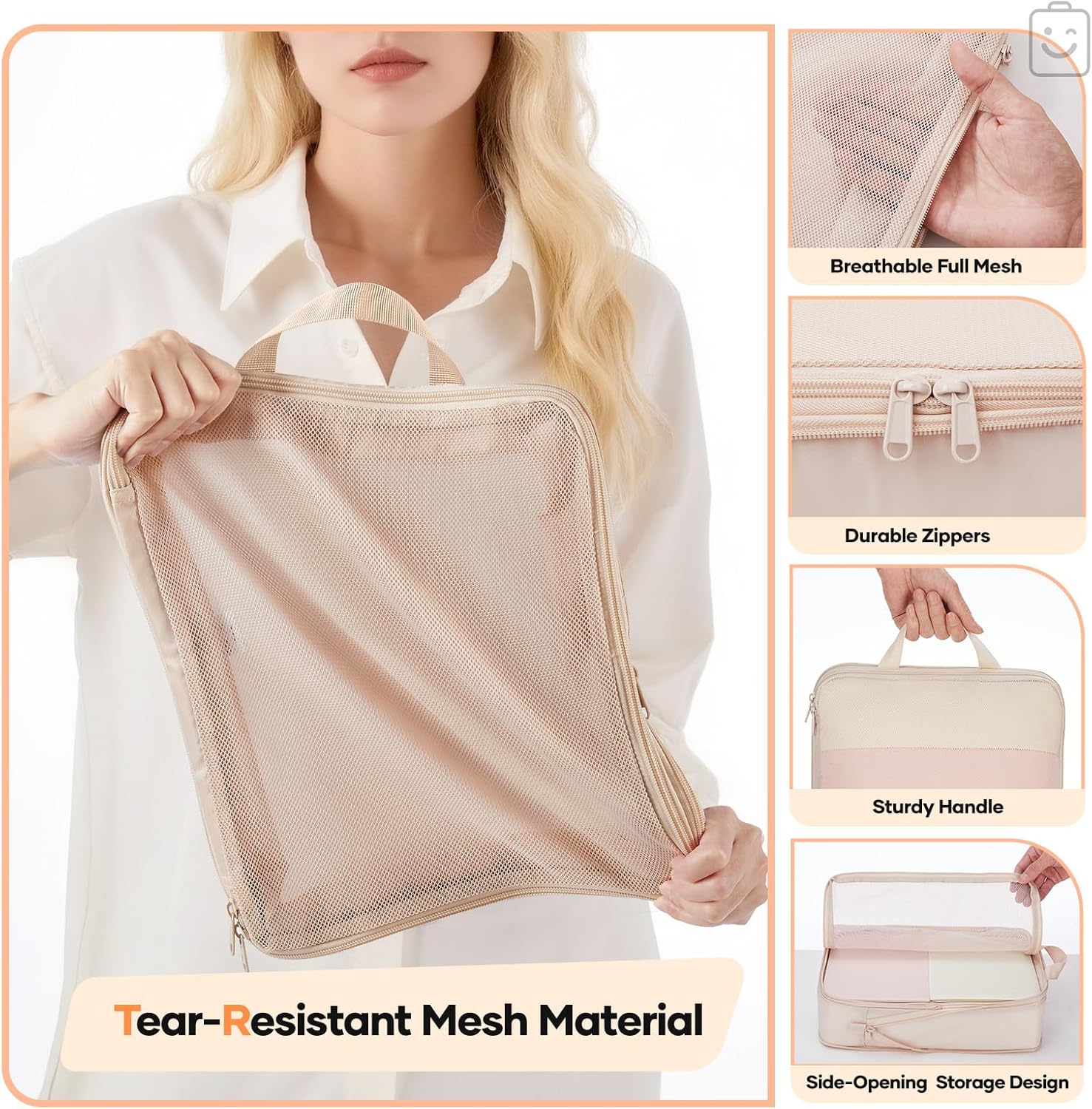 Veken 6/9/11 Set Compression Packing Cubes for Travel Essentials,Compressible Expandable Large Luggage Suitcase Organizer Bags for Clothing,Durable Space Saver Storage Bags(Beige)