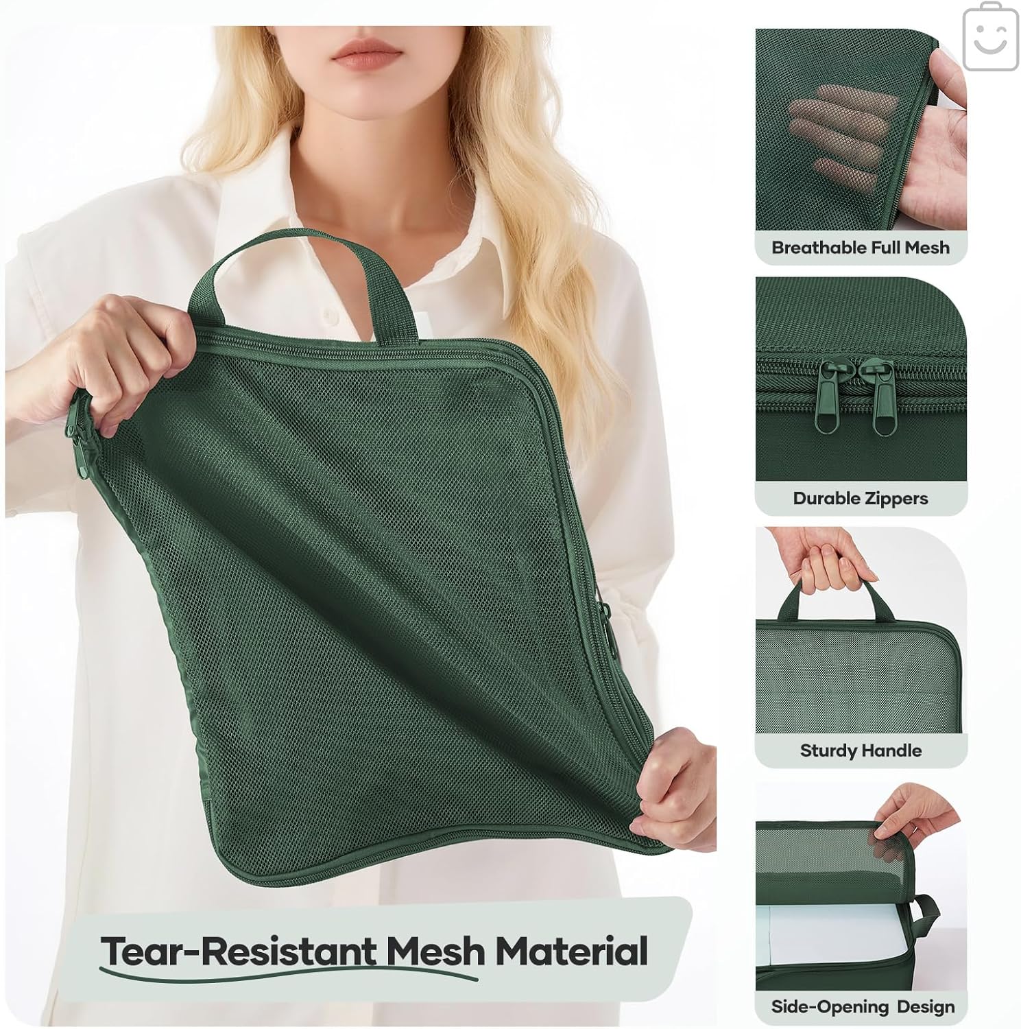 Veken 9/11 Set Compression Packing Cubes for Travel Essentials,Compressible Expandable Large Luggage Suitcase Organizer Bags for Clothing,Durable Space Saver Storage Bags(Dark Green)