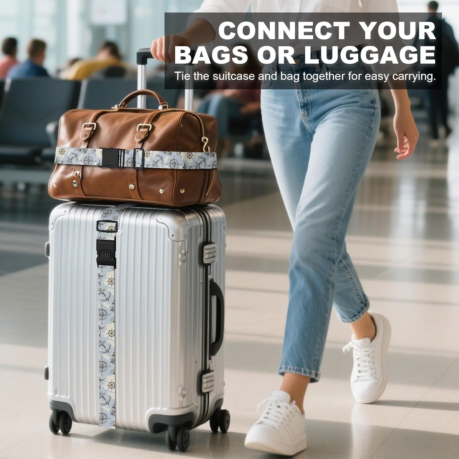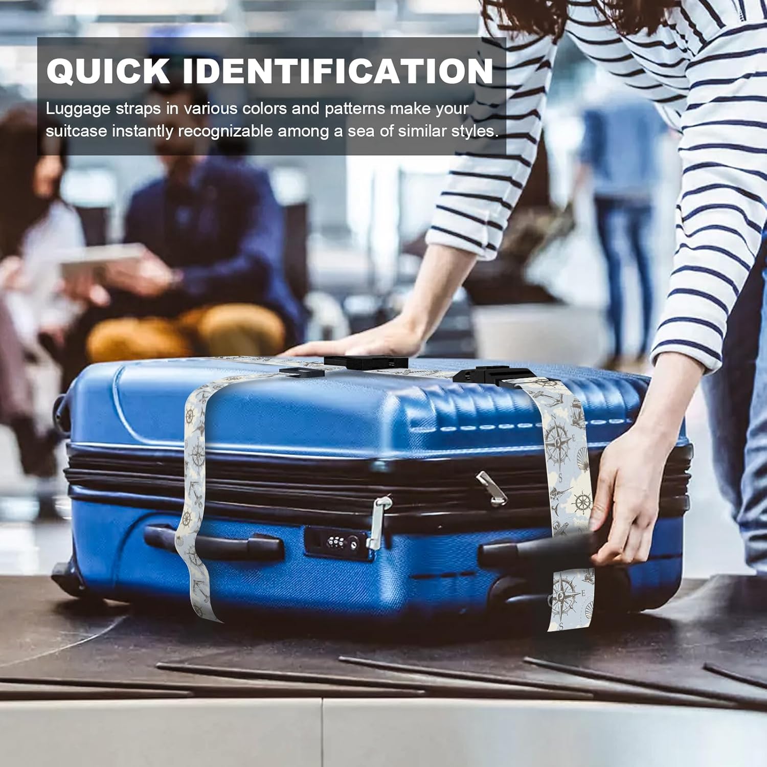 2 Pack Luggage Straps, Adjustable Cute Printing with Combination Lock Luggage Straps for Women Men Travel School Business Trips-Sailing
