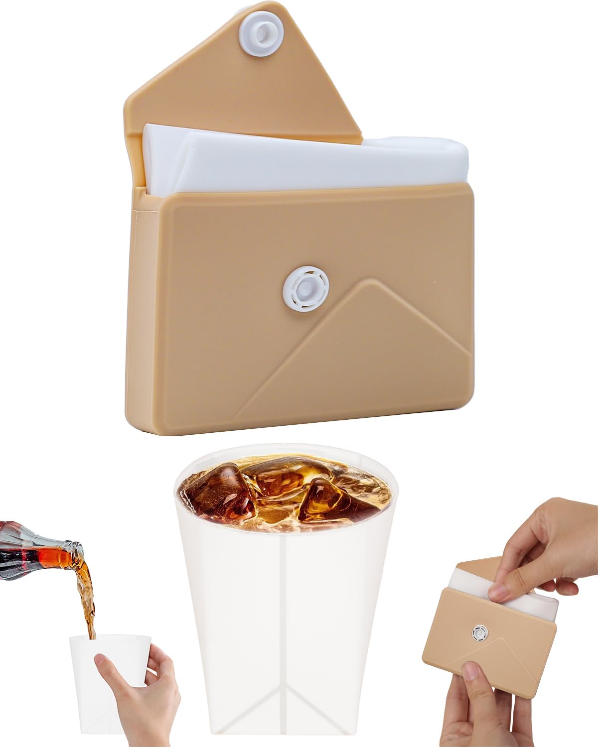 - [Foldable & Compact Design]This【2025 Upgraded】collapsible silicone cup comes with a slim, envelope-shaped storage pouch. When folded, it's as compact as a credit card, slipping easily into pockets, purses, or backpacks. Its space-saving design suits on-the-go lifestyles, and it unfolds into a 250ml water cup instantly, ready for serving various drinks anywhere, whether on a hike or during a busy workday.