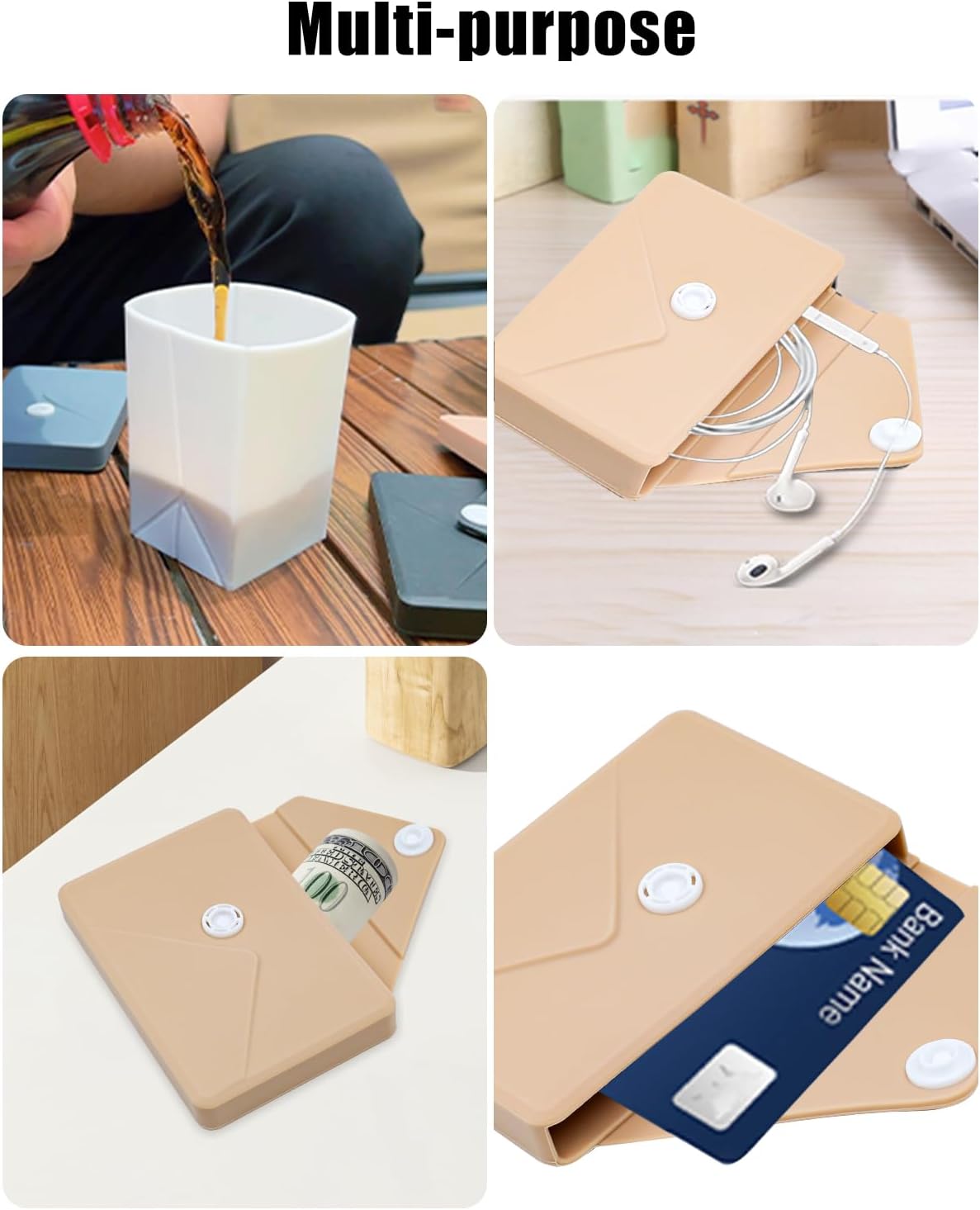 - [Multi-Purpose Functionality]The foldable cup serves as reusable drinkware for outdoor picnics, camping, or home use. Meanwhile, the storage pouch doubles as a mini organizer. You can store earphones, charging cables, bank cards, or cash in it. One product offers two smart solutions for your daily essentials.