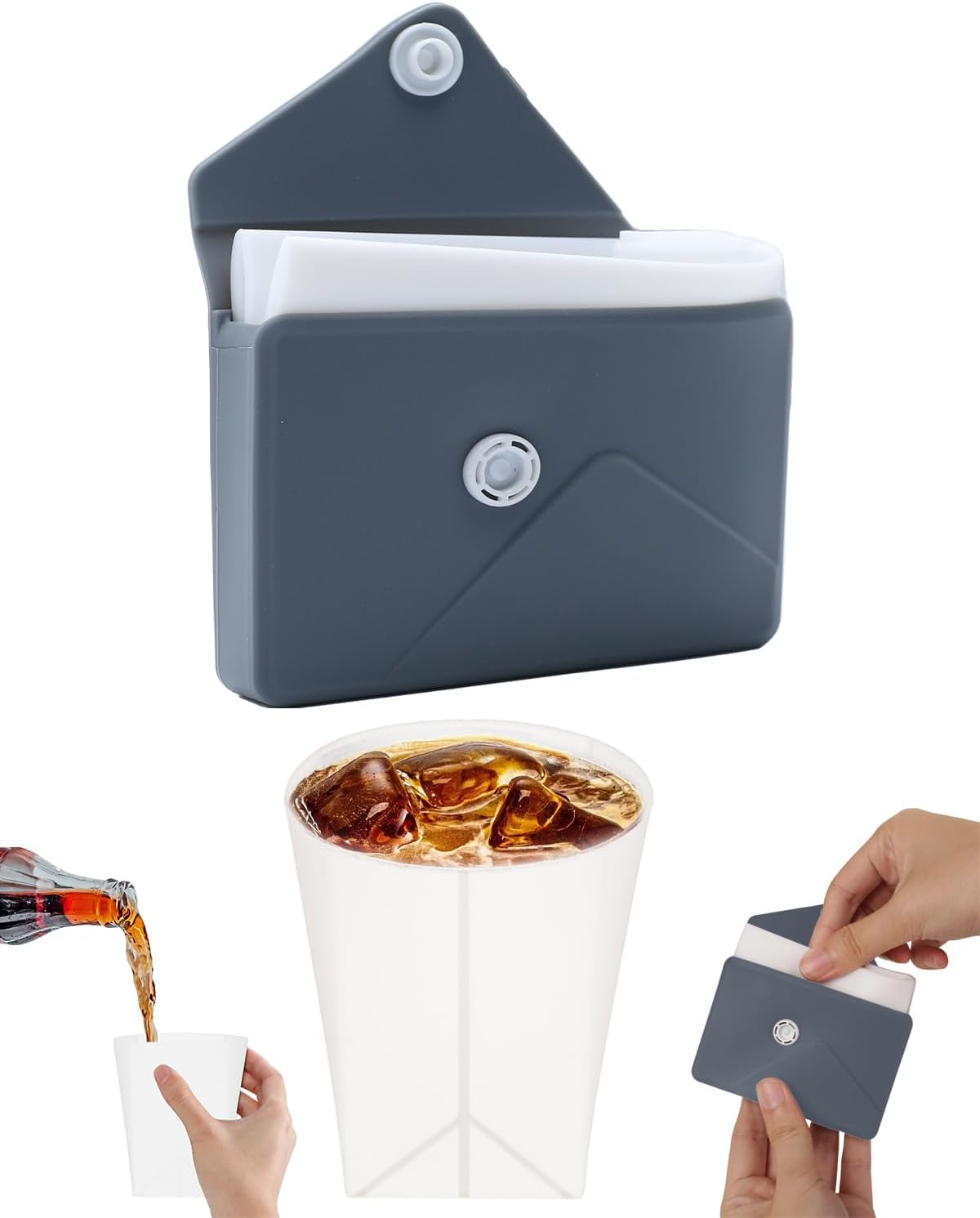 Collapsible Cup[2025 Upgraded] Silicone Foldable Water Cup, Collapse Water Bottles with Envelope-Shaped Storage Pouch, Portable Camping Cup for Outdoors, Travel, Camping (Space Grey)