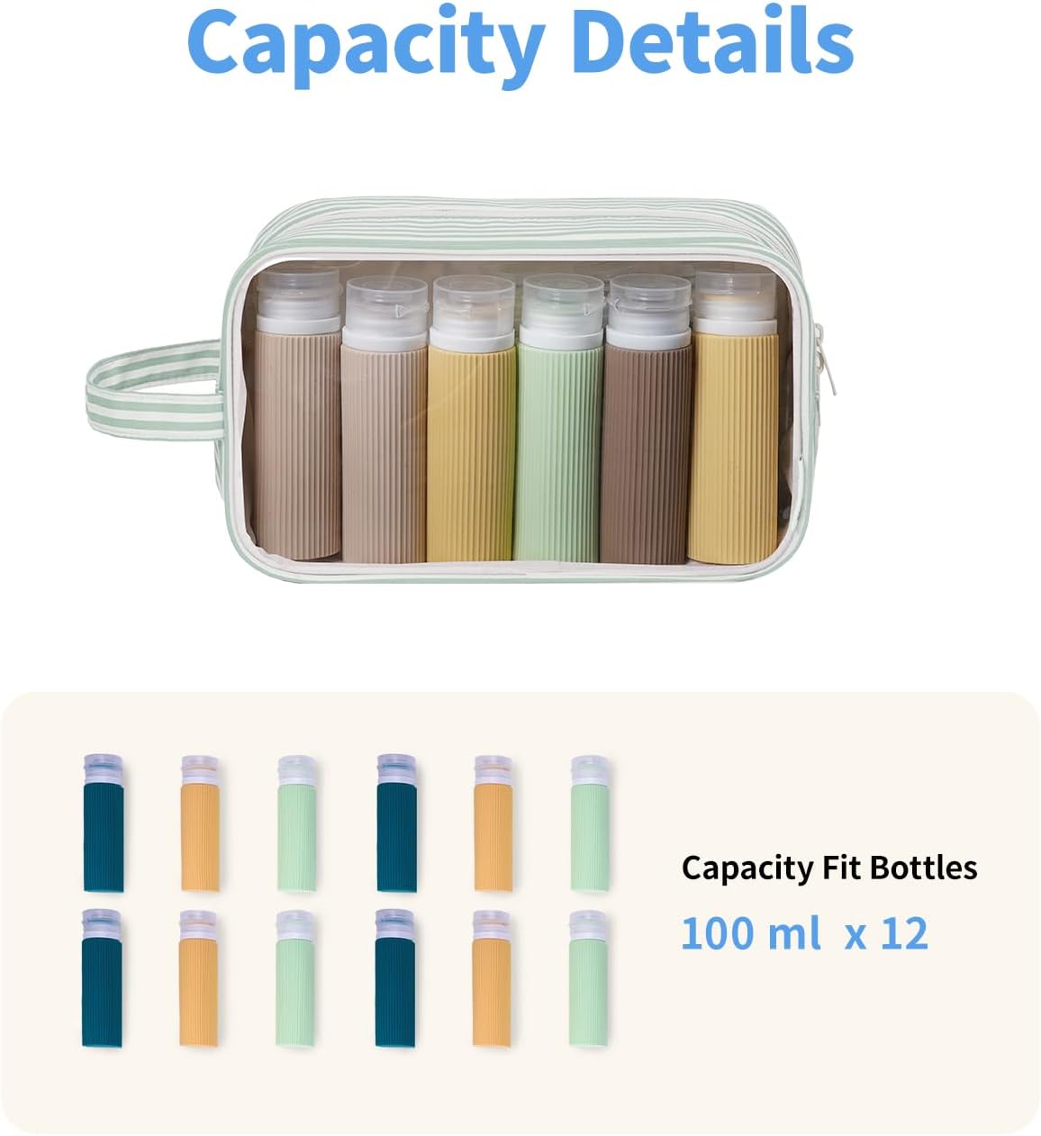 Narwey Clear Toiletry Bags for Traveling Women Men, Clear Travel Bags for Toiletries Makeup Bag Cosmetic Bag with Zipper, Make Up Organizer, Skincare Bag (Mint Green Stripe)