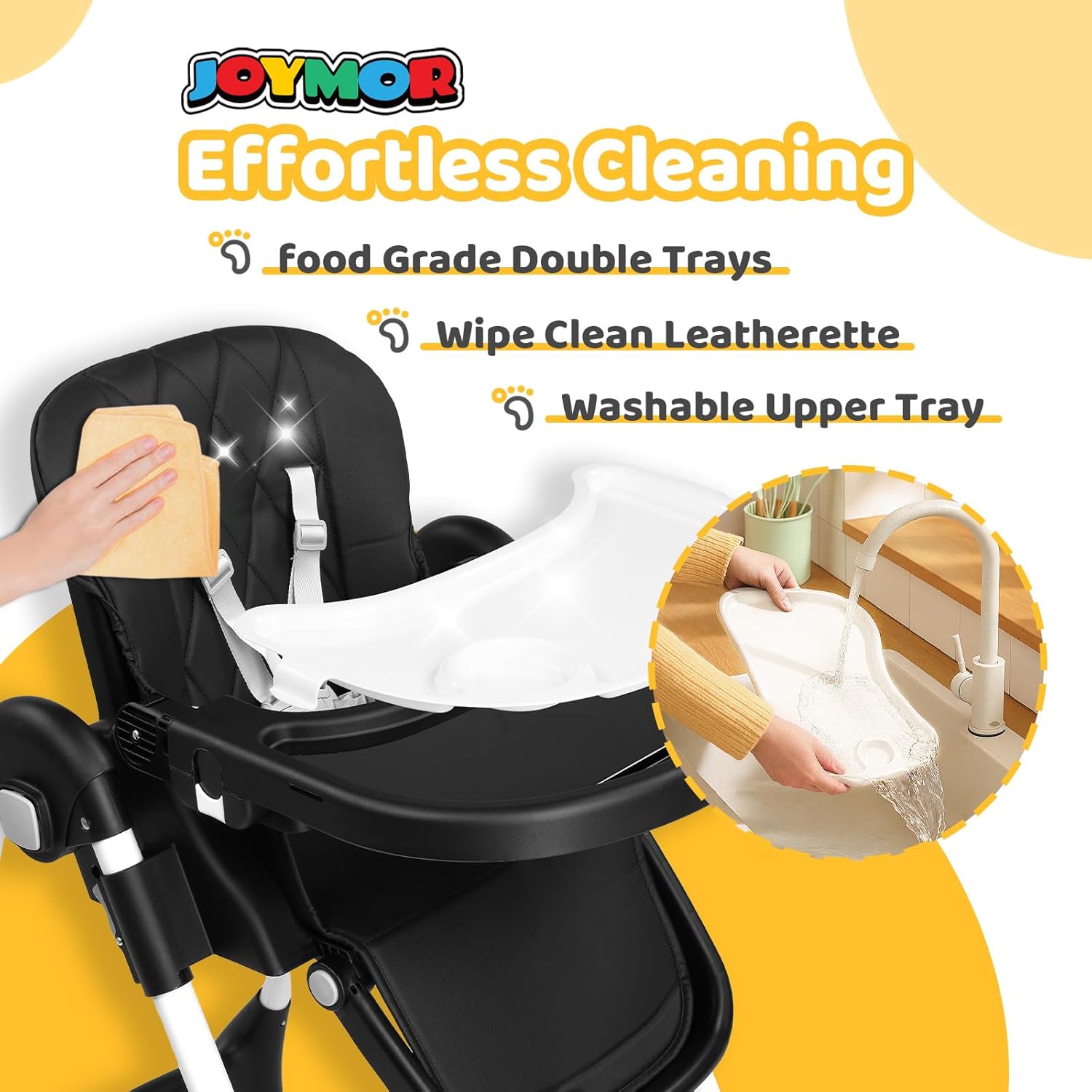JOYMOR Foldable Baby High Chair, 4 in 1 Convertible Highchair for Eating, Height Adjustble and Multiple Recline, Compact Foldable Design for Easy Storage (Black)