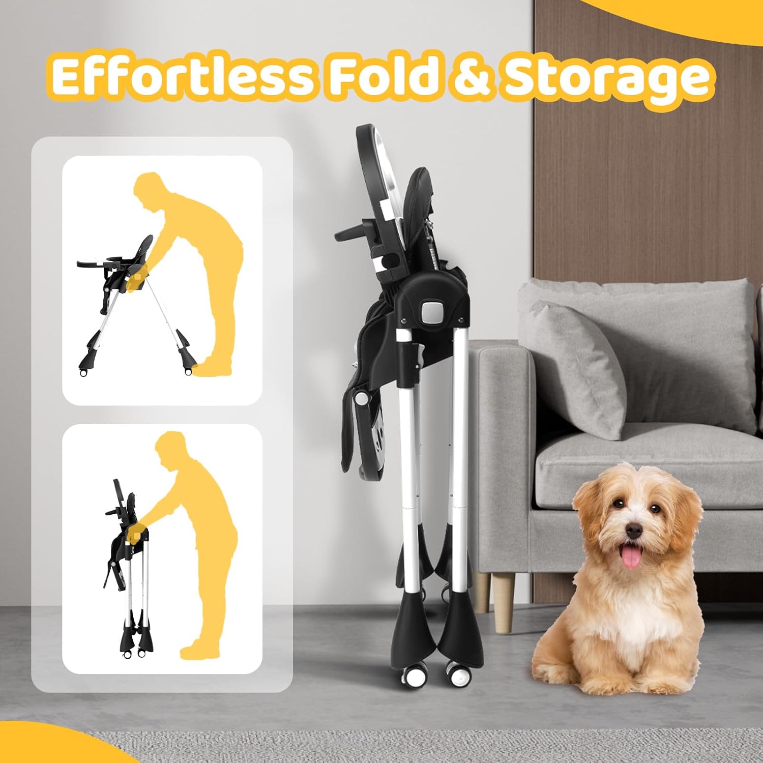 - Foldable and Portable Design: This toddler high chair can be easily folded into a compact size by pressing the folding buttons on both sides withour removing the tray, making it convenient for storage. Equipped with 4 smooth 360° rotating wheels allowing you to easily move this foldable high chair from the kitchen to the dining area