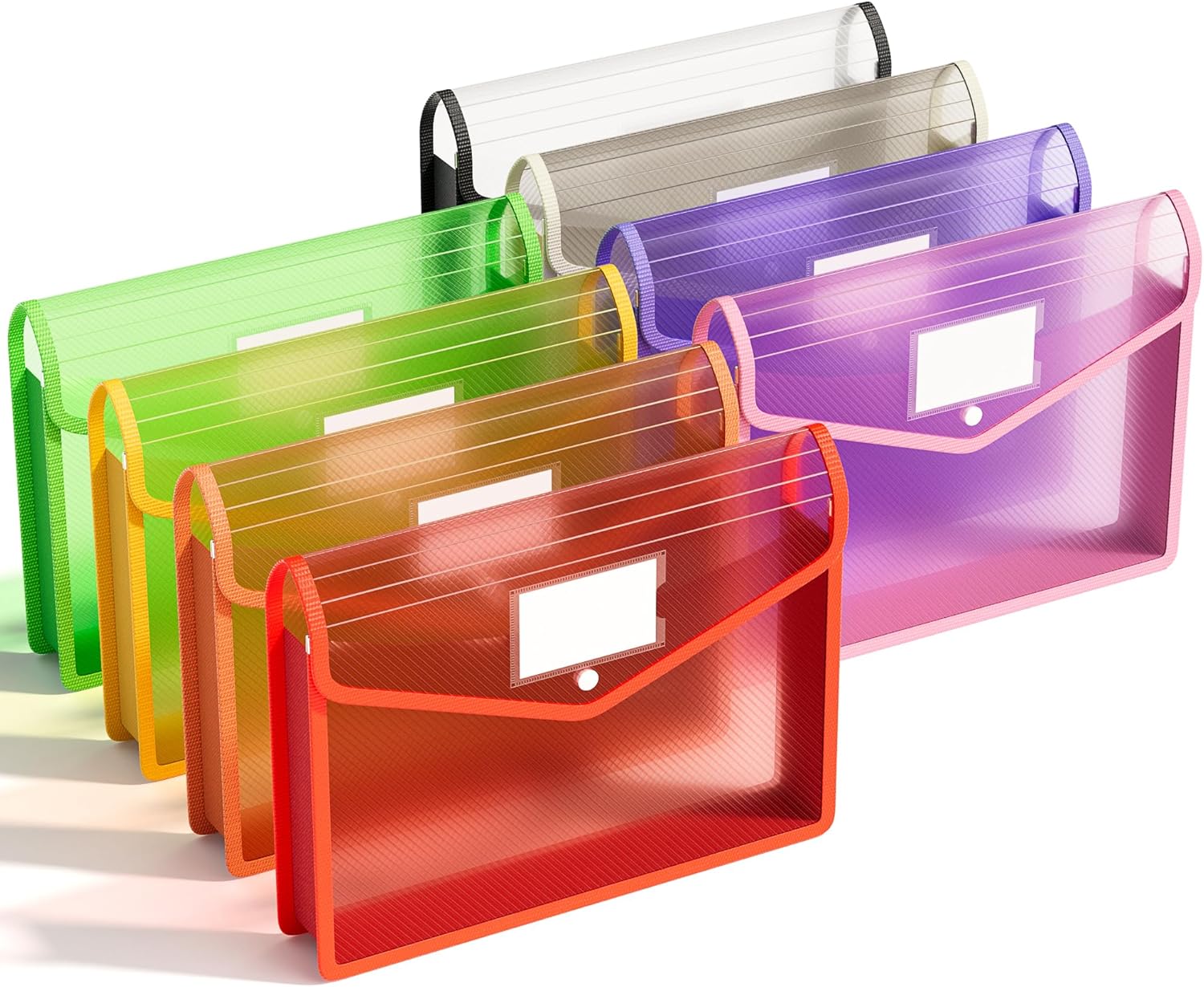 ABC life 8 Pack Plastic Expanding File Folder, Folders for Documents with Snap Closure, Colorful File Folder Organizer Holder, Transparent, Large Capacity, Fit Letter/A4 Size - Rainbow