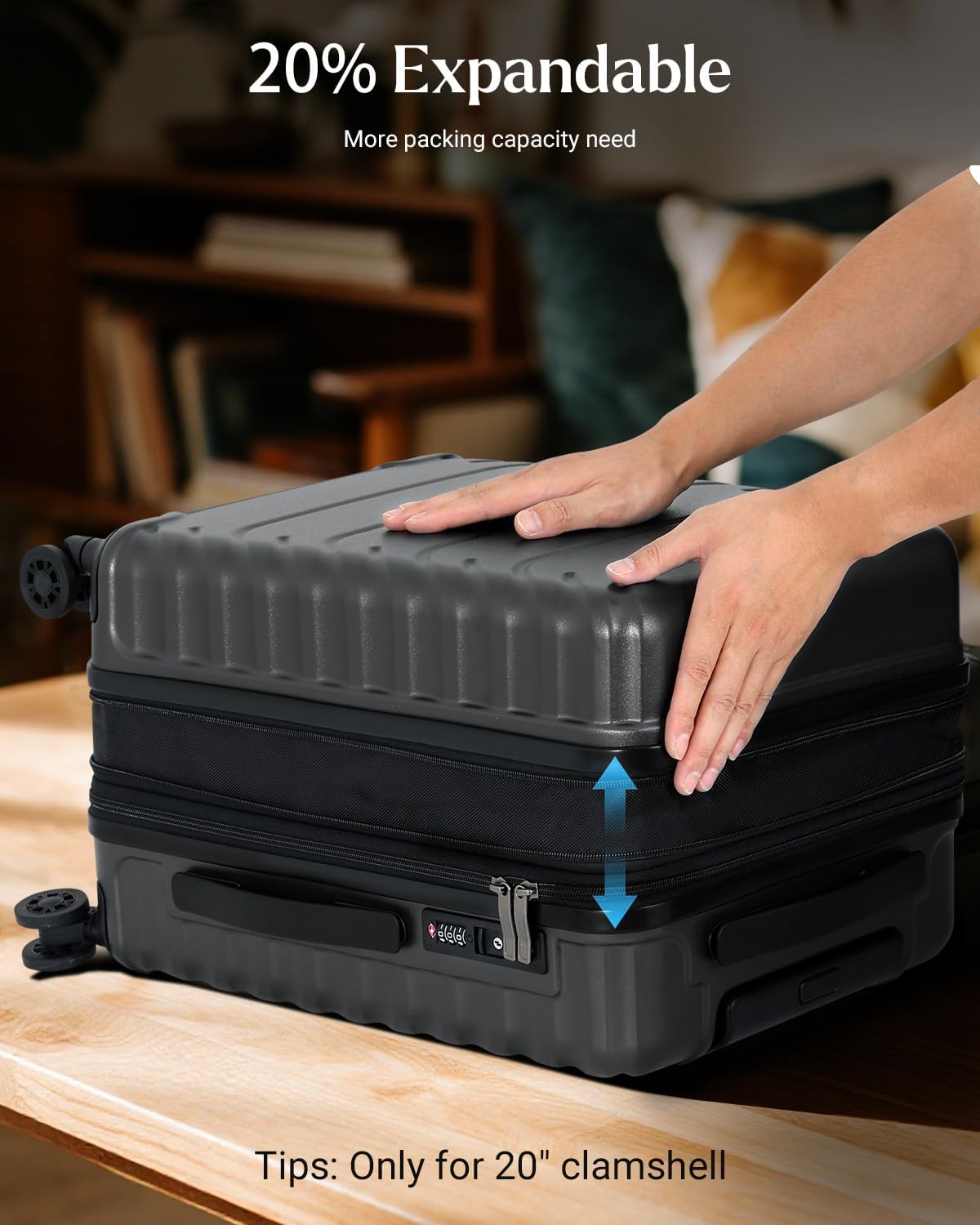 - More Packing Space Options: this 22x14x9 airline-approved 20" clamshell carry on luggagewith 20% expandable design, allowing extra space for souvenirs or extended stays; 28" luggage non-expandable