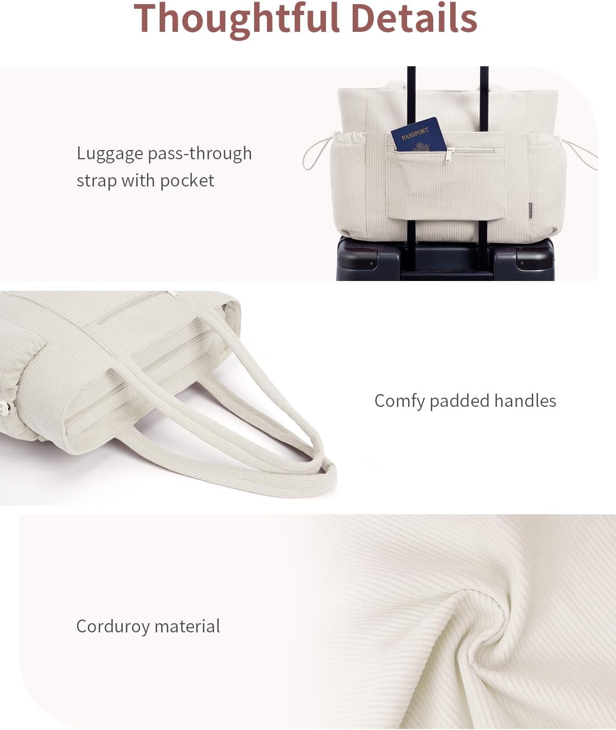 ECOHUB Tote Bag for Women, Work Tote Bags with Laptop Compartment, Large Corduroy Tote Bag with Stanley Cup Holder