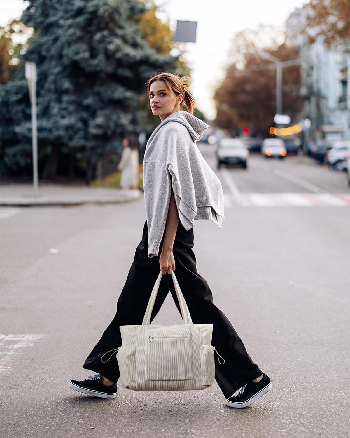 • 【UNIQUE DESIGN】Our tote bags are made of high-quality corduroy materials, classic styles never go out of style. The large tote bag size is 15.8 x 6.3 x 13 inch (40×16×33cm). It is large enough to hold your laptop, magazine, wallet, cosmetics, passport, keys, A4 papers, water bottle, etc