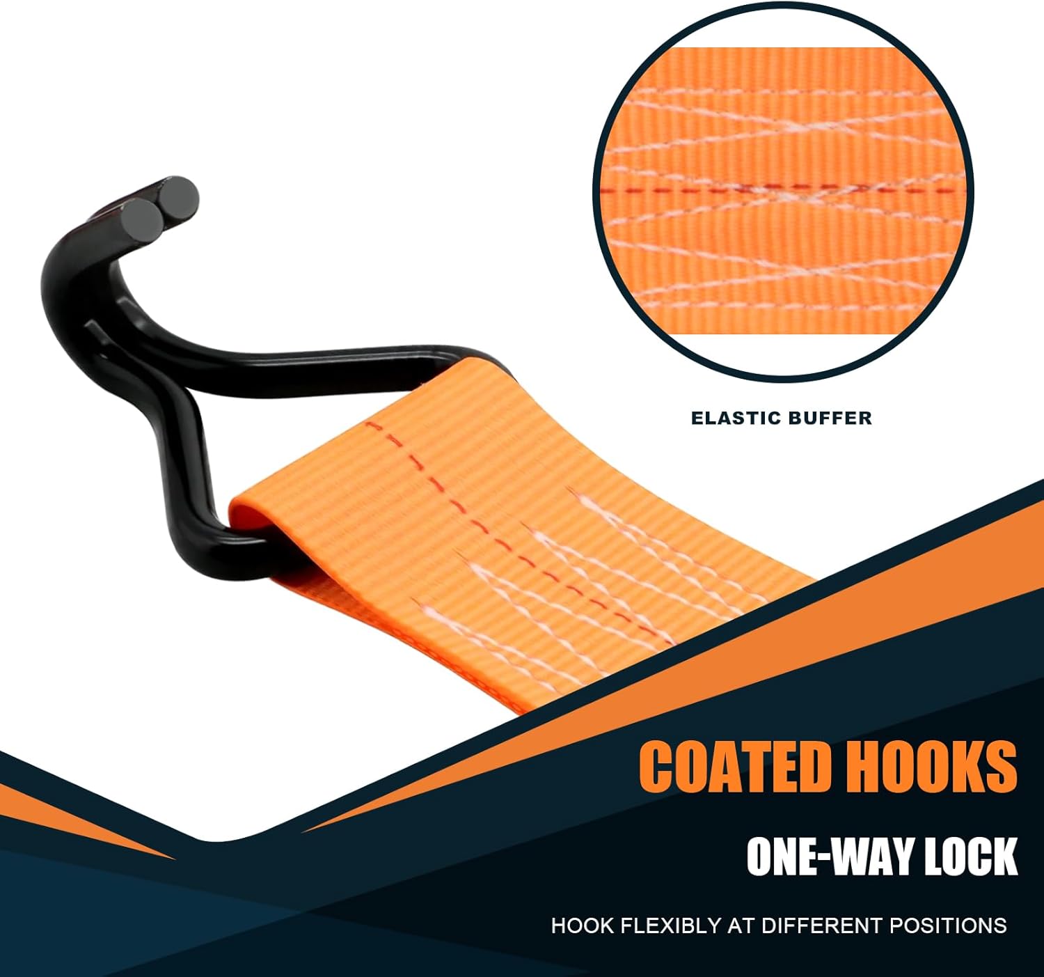 - With upgraded powder-coated fitting and rubber handle, our j-hook 2 inch ratchet straps are more sturdy and reliable. It won't bend with high loads; able to attach to truck bed tie-down points including D-rings&O-rings, frequently used with flatbed equiment, truck supplies, etc