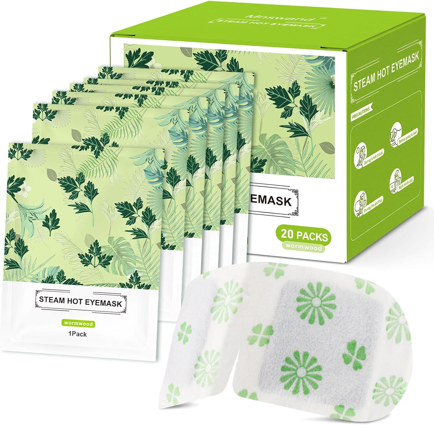 20 Packs Steam Eye Mask, Wormwood Steam Eye Masks Disposable, Self-Heating Relief Heated Eye Mask for Fatigue, Perfect for Home, Sleep, Spa & Travel