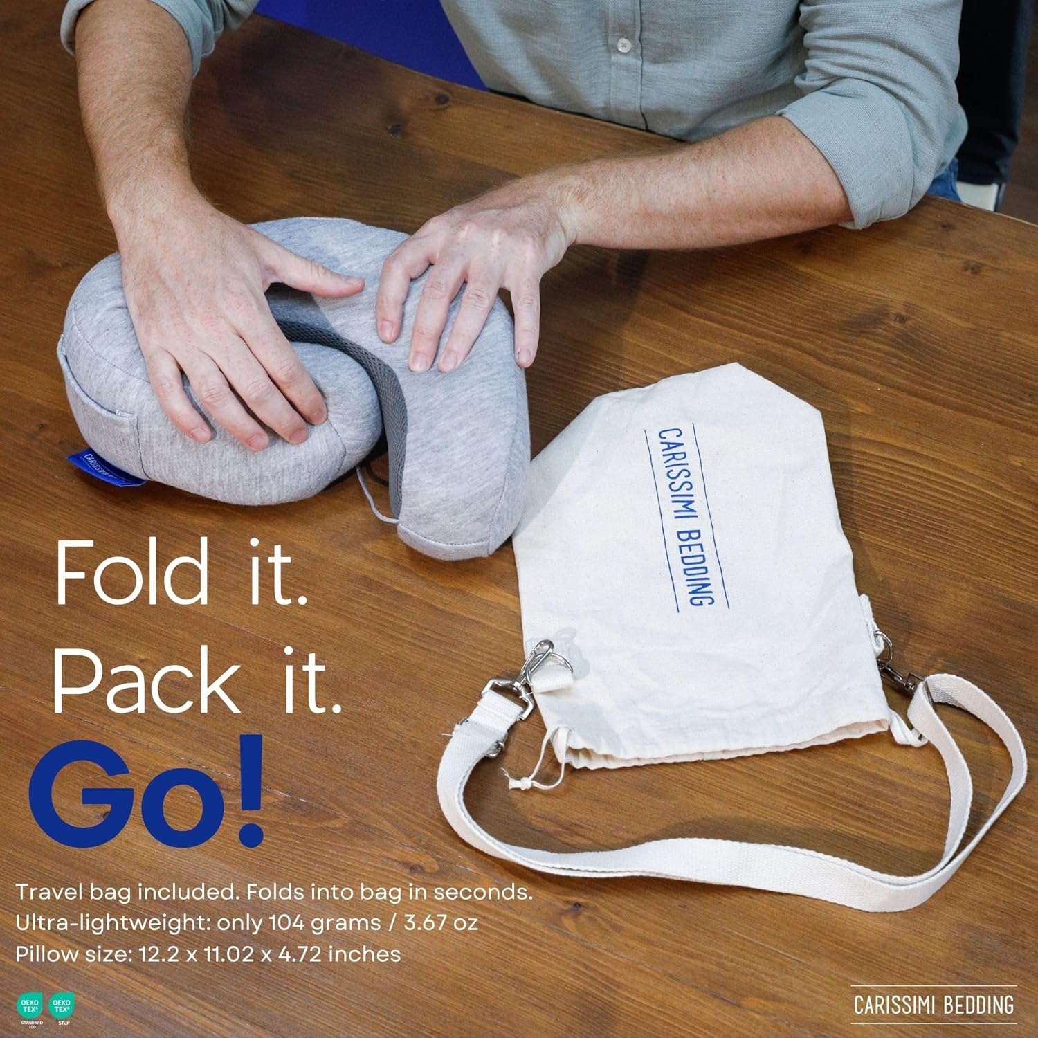 - Packs Down Small: Compresses into a shoulder-strap carry case you can wear crossbody or loop over your suitcase handle for hassle-free, hands-free travel.