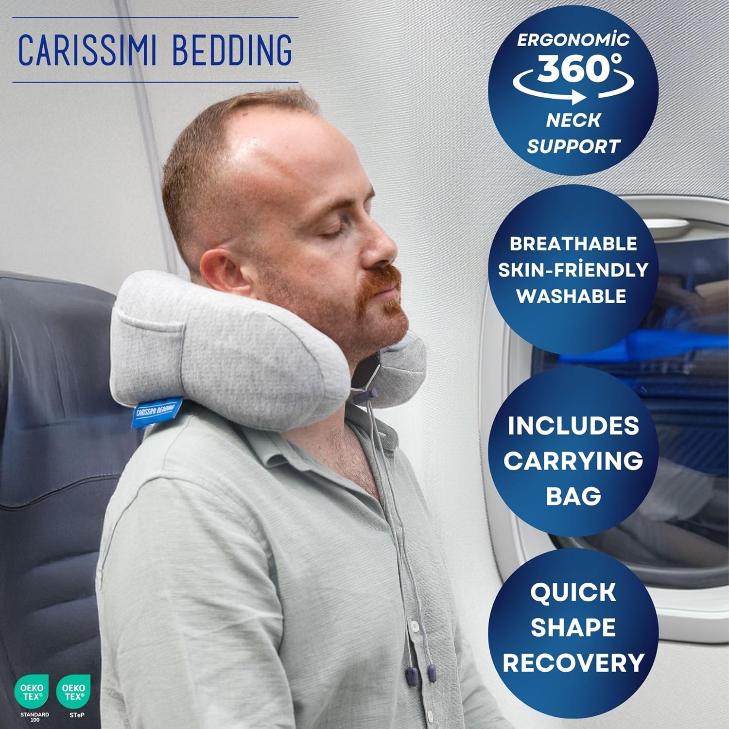 - Chin & Neck Support: Ergonomic U-shape stabilizes your head and helps prevent forward nodding, easing neck and shoulder strain on airplanes, in cars, trains, or office chairs.