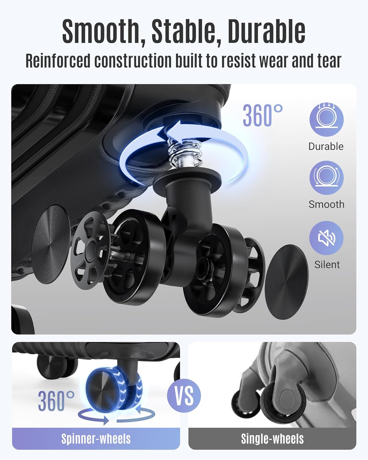 - Excellent Craftsmanship: Crafted from high-quality ABS composite materials, this lightweight carry-on luggage offers exceptional strength and flexibility. Its scratch-resistant surface maintains a like-new appearance trip after trip. Rigorously tested for impact resistance, it’s built to protect your belongings under tough travel conditions.
