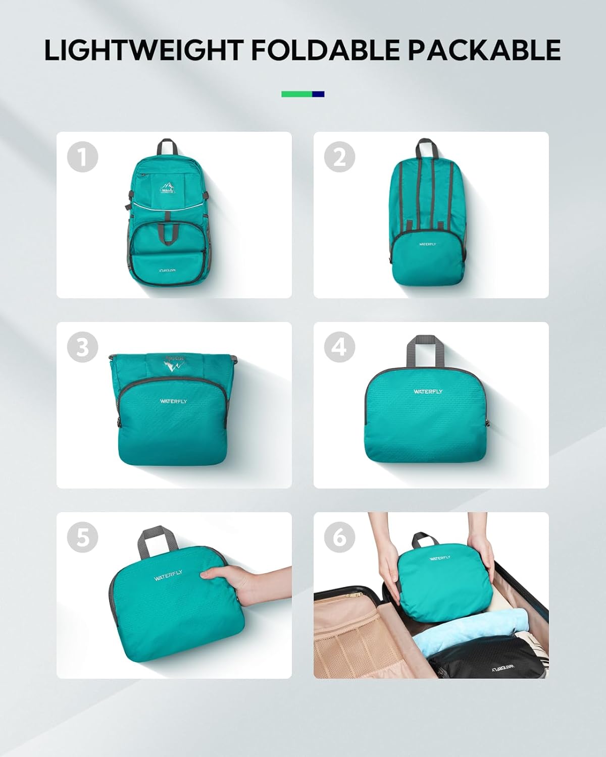 WATERFLY Hiking Foldable Daypack Backpack: 25L Ultra Lightweight Packable Waterproof Outdoor Travel Day Pack for Woman Man