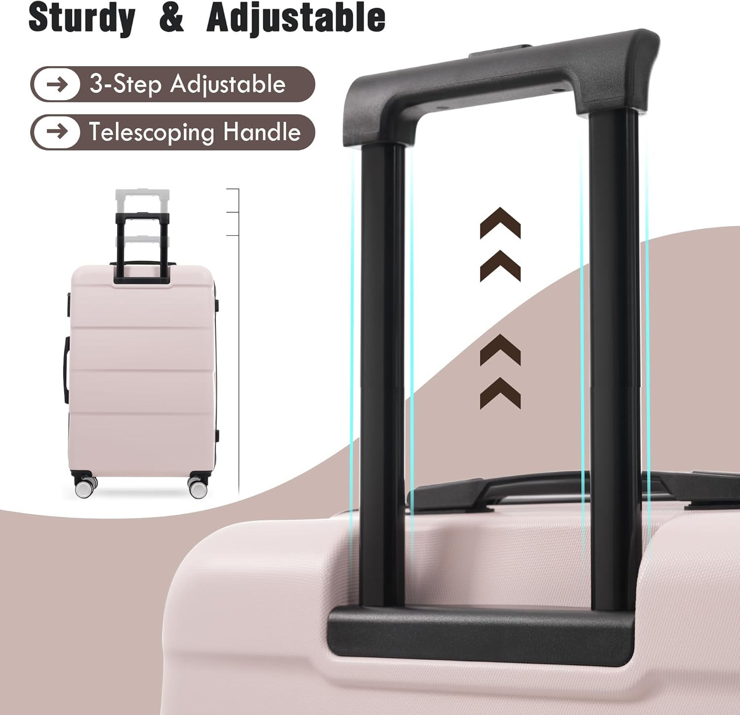 Merax Luggage Sets of 3 Piece Carry on Suitcase Airline Approved,Hardcase Suitcase Set with Double Spinner Wheels,Light Pink