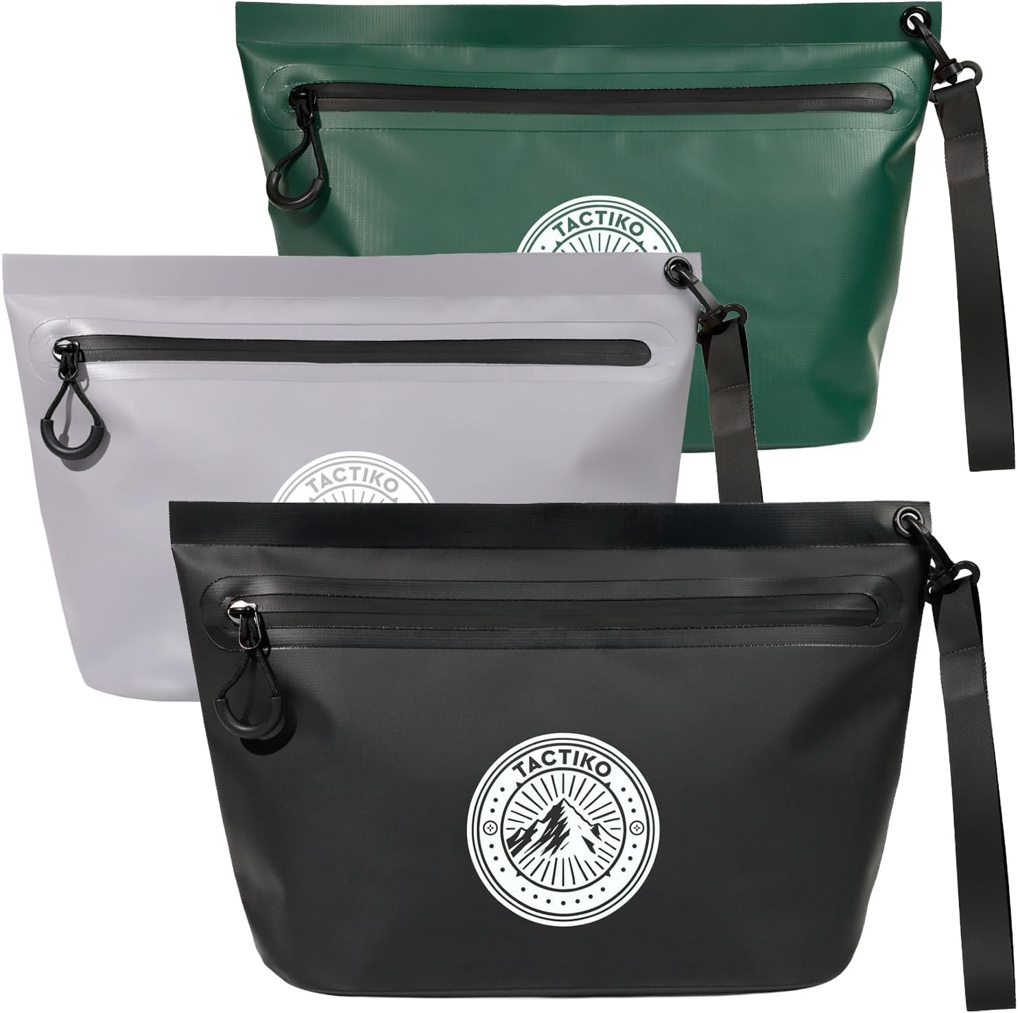 3-Pack Tactiko Heavy-Duty Splash Water Resistant Zipper Pouches - Hold-All Organizers for Dry Bags, Travel Bags (3, Black/Gray/Green)
