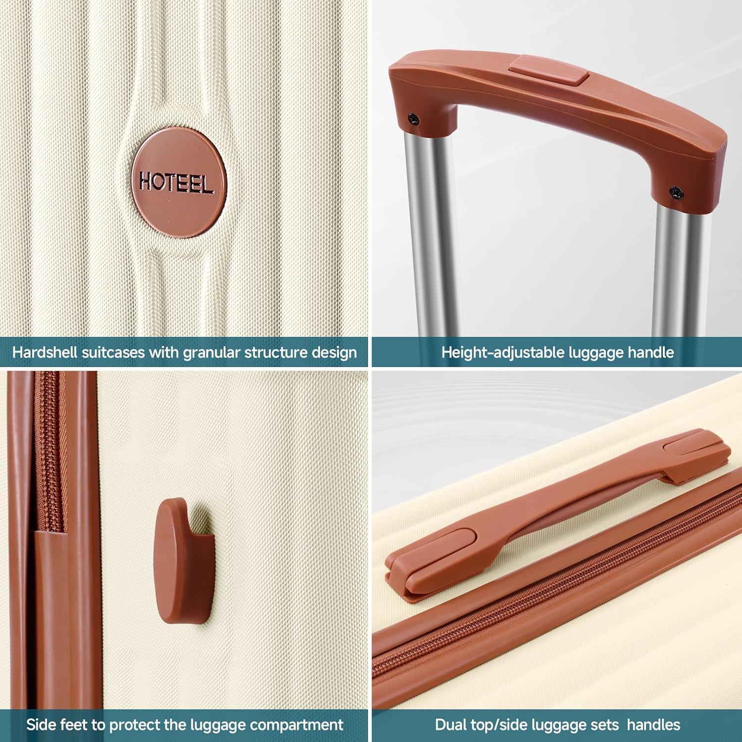 Hoteel Luggage 6-piece Set, 360° Universal Suitcases with Wheels Hard Shell Suitcase with TSA Lock, Including Waterproof Luggage Bag, Travel Maletas for Men and Women,Beige(16/20/24/28Inch)