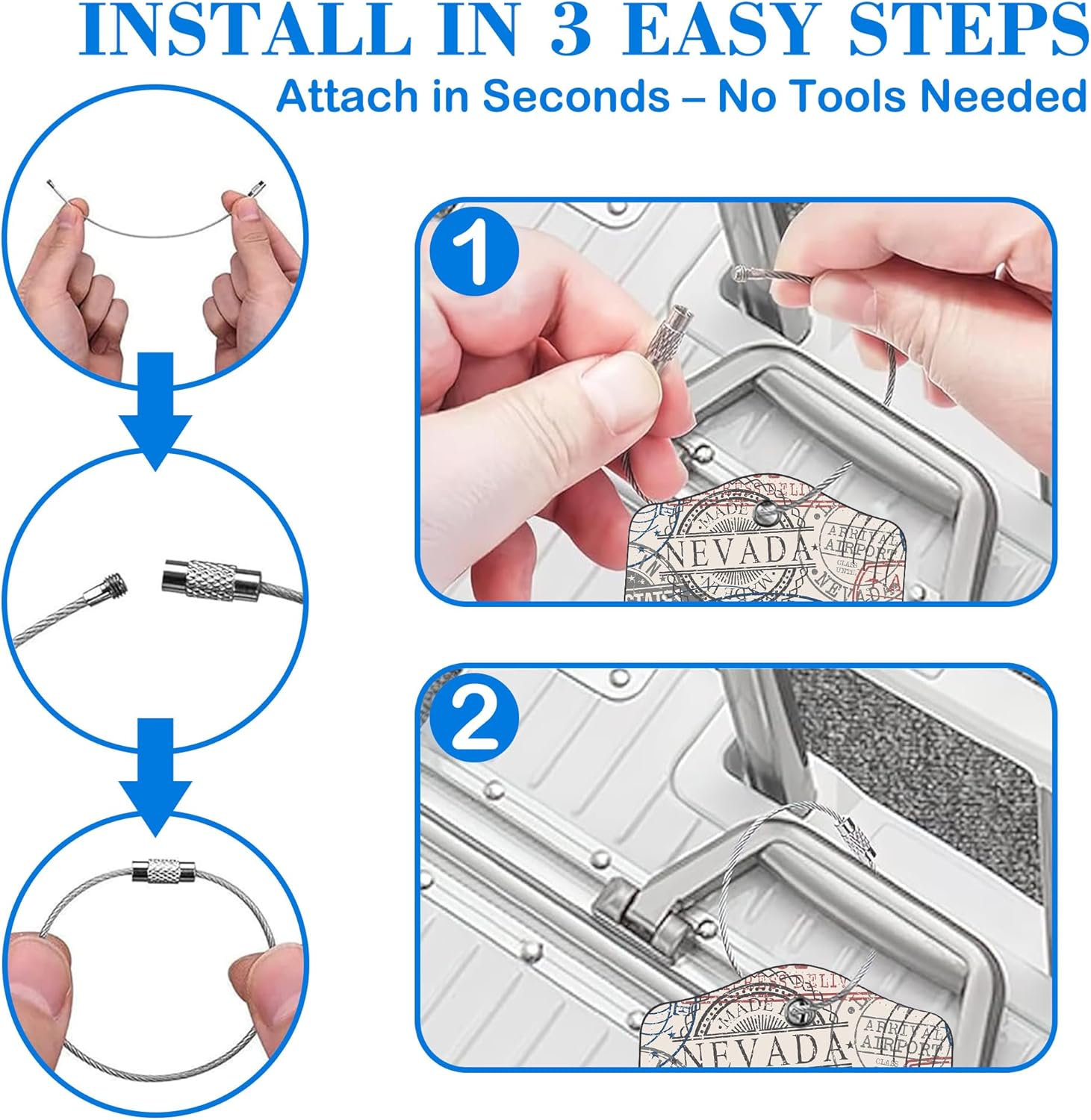 - Travel-Ready Design: Built to handle the journey. Each bag tag for luggage includes a sturdy stainless steel loop and a replaceable name card. Suitable for frequent flyers and rough baggage handling—stays secure, won't go missing