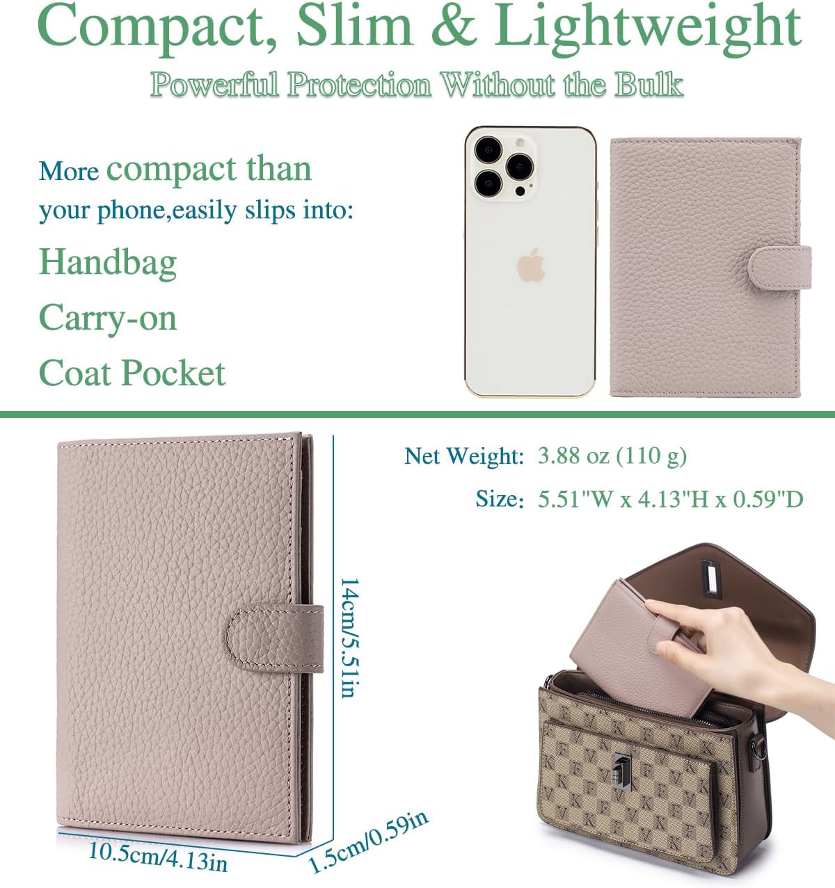 - ✅【Compact, Slim & Lightweight】 Measuring only 4.1 x 5.5 inches, this compact rfid passport holder for travel easily slips into your handbag, carry-on, or coat pocket. Its minimalist profile ensures portability without sacrificing storage space.
