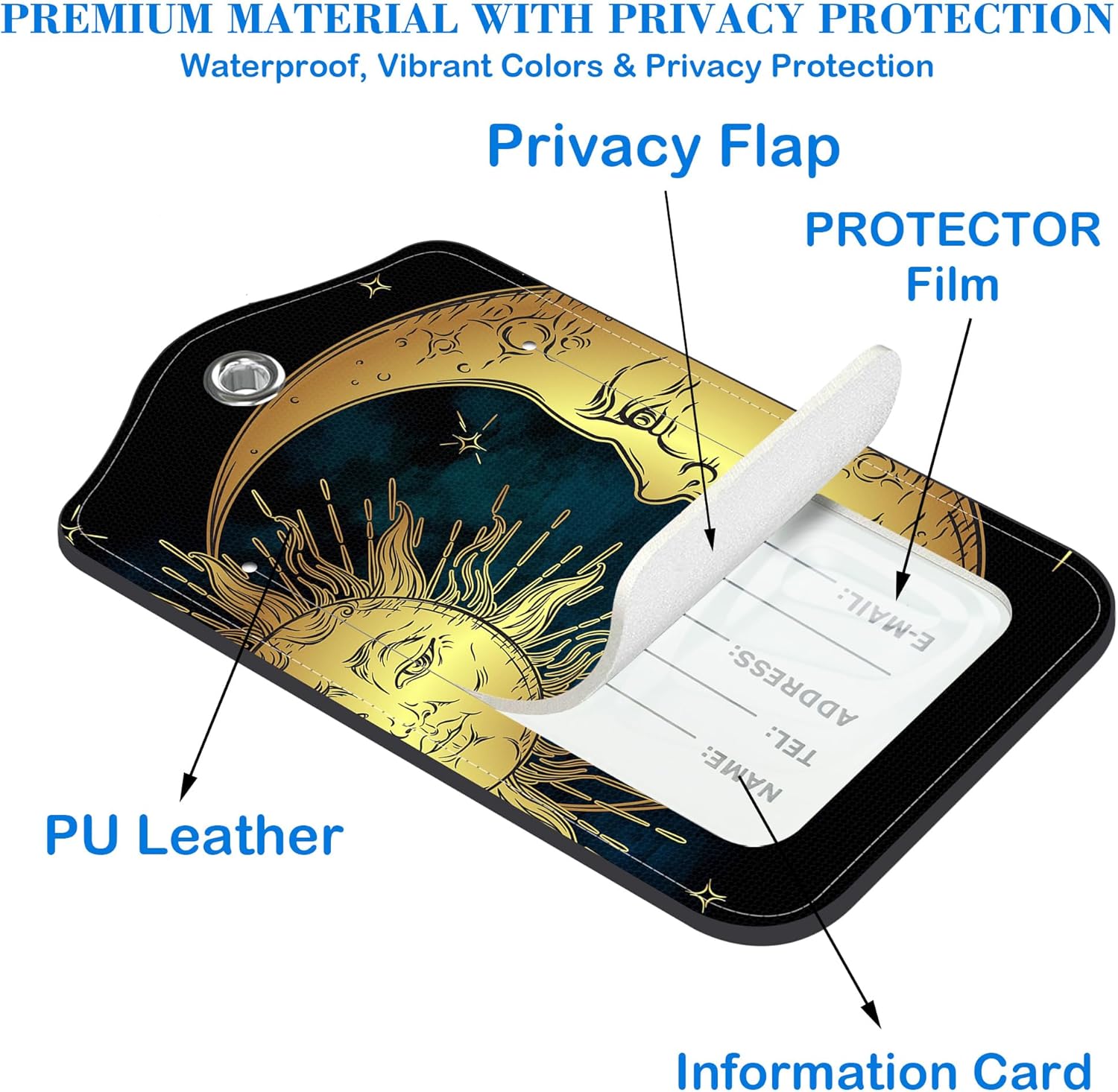 Moon Sun Star Luggage Tags for Suitcases Astrology Phases Leather Travel Tags for Luggage ID Label with Privacy Cover and Stainless Steel Loop for Men Women Suitcase Backpack, Set of 2