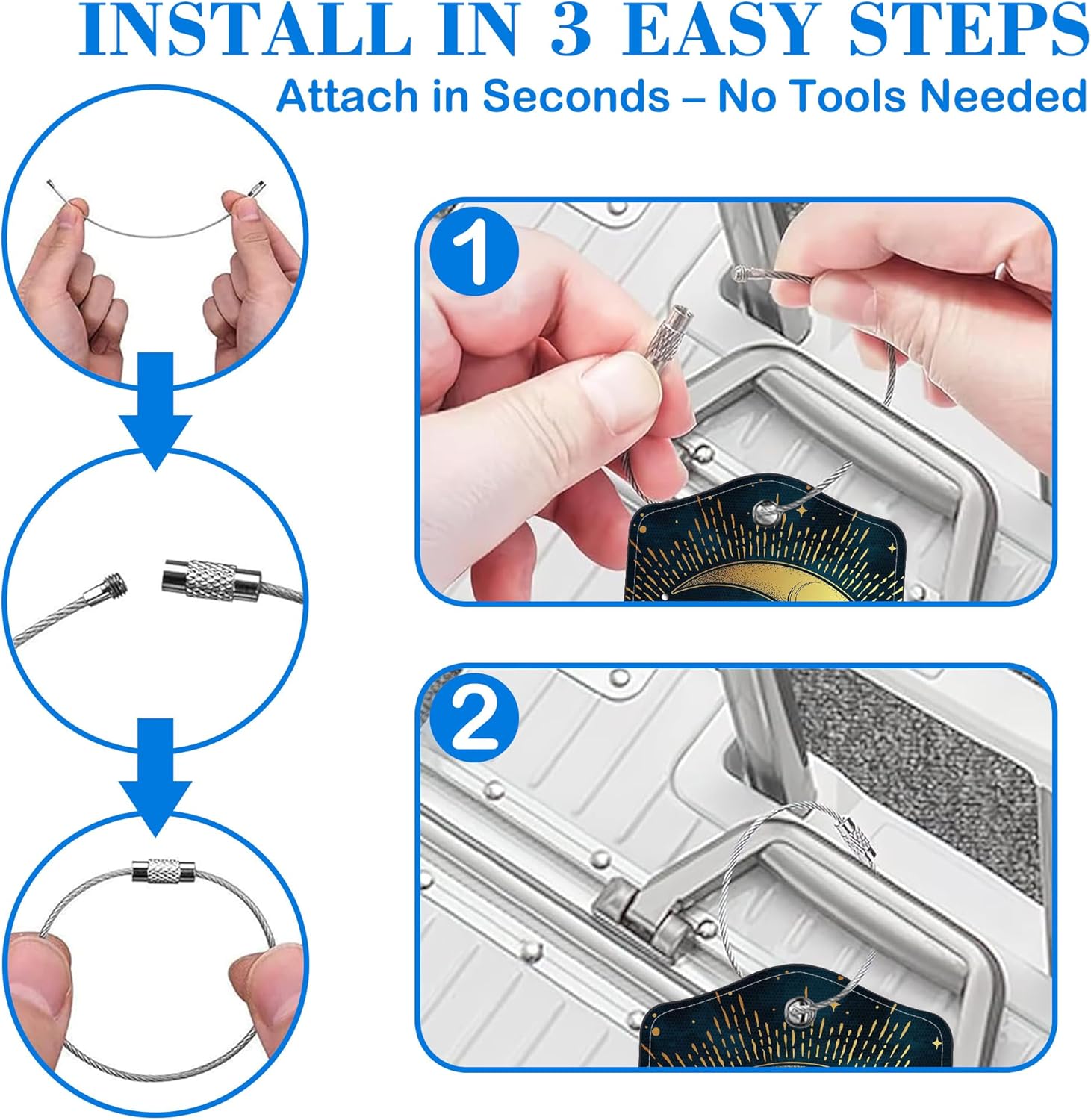 - Travel-Ready Design: Built to handle the journey. Each bag tag for luggage includes a sturdy stainless steel loop and a replaceable name card. Suitable for frequent flyers and rough baggage handling—stays secure, won't go missing