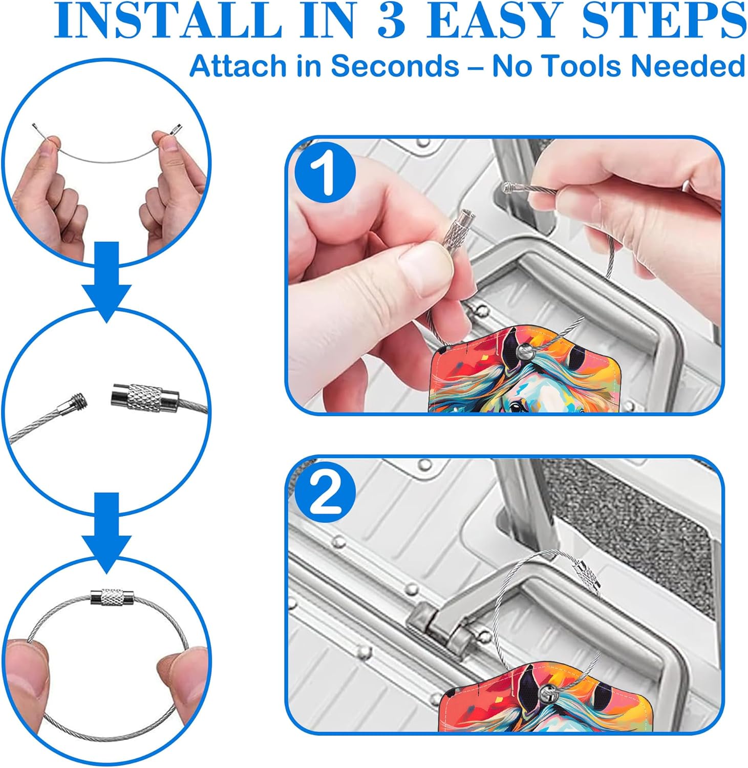 - Travel-Ready Design: Built to handle the journey. Each bag tag for luggage includes a sturdy stainless steel loop and a replaceable name card. Suitable for frequent flyers and rough baggage handling—stays secure, won't go missing