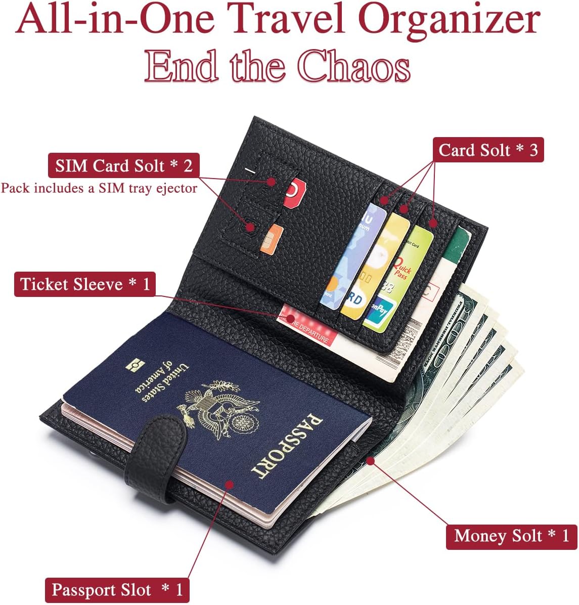 - ✅【All-in-One Travel Organizer】 Designed for modern women on the go, this slim leather passport holder for travel fits your passport, credit cards, boarding passes, SIM cards, travel documents, and cash. Includes a back zipper pocket for coins and a secure SIM card ejector tool—making it a must-have for international travel.